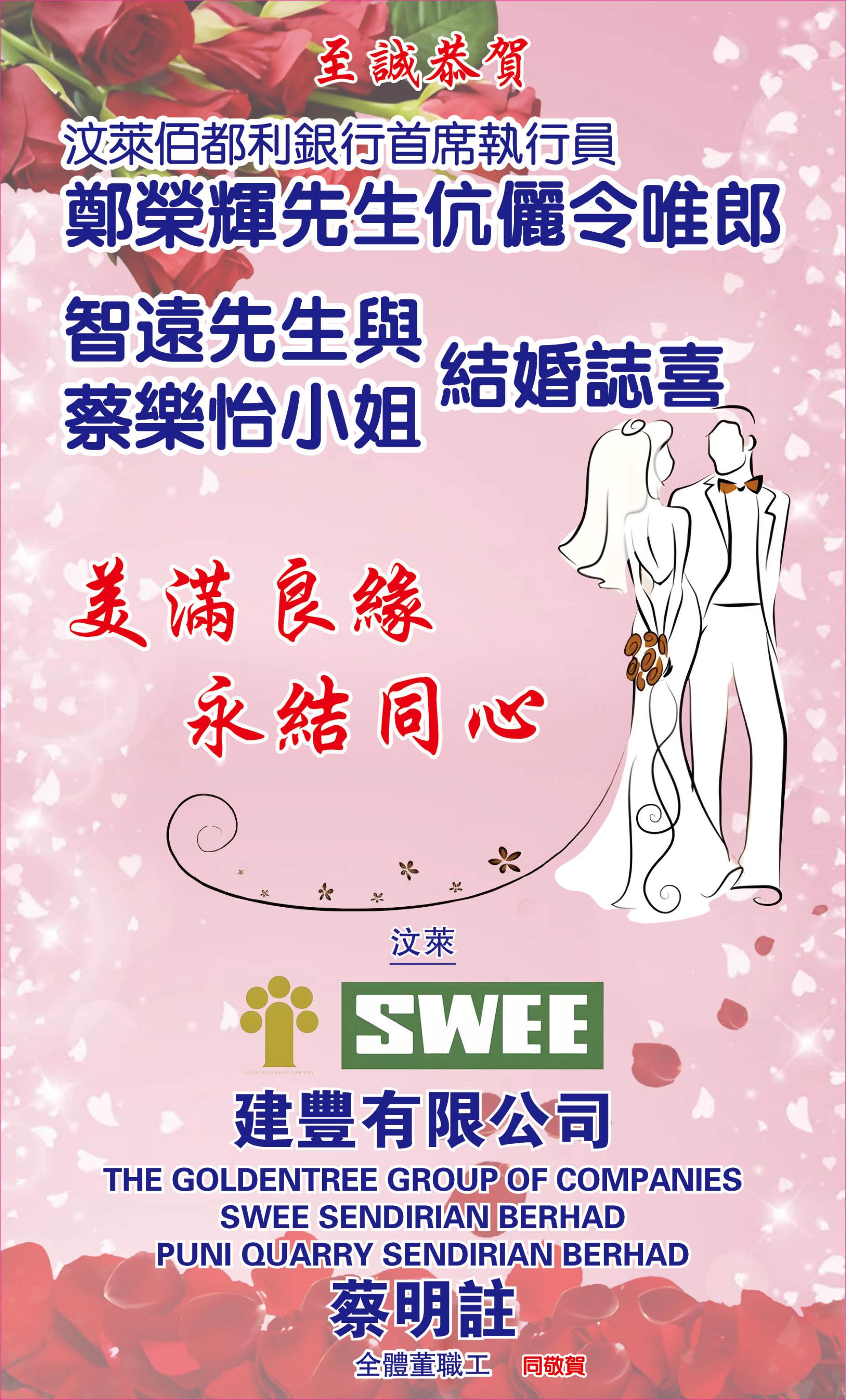 【贺词】賀鄭智遠先生与蔡樂怡小姐結婚誌喜