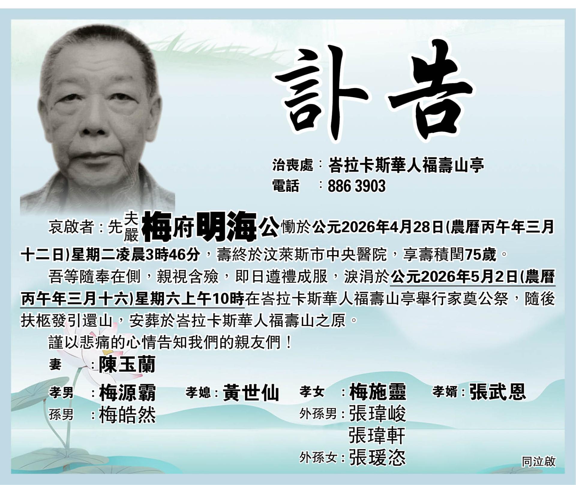 【讣告】梅明海