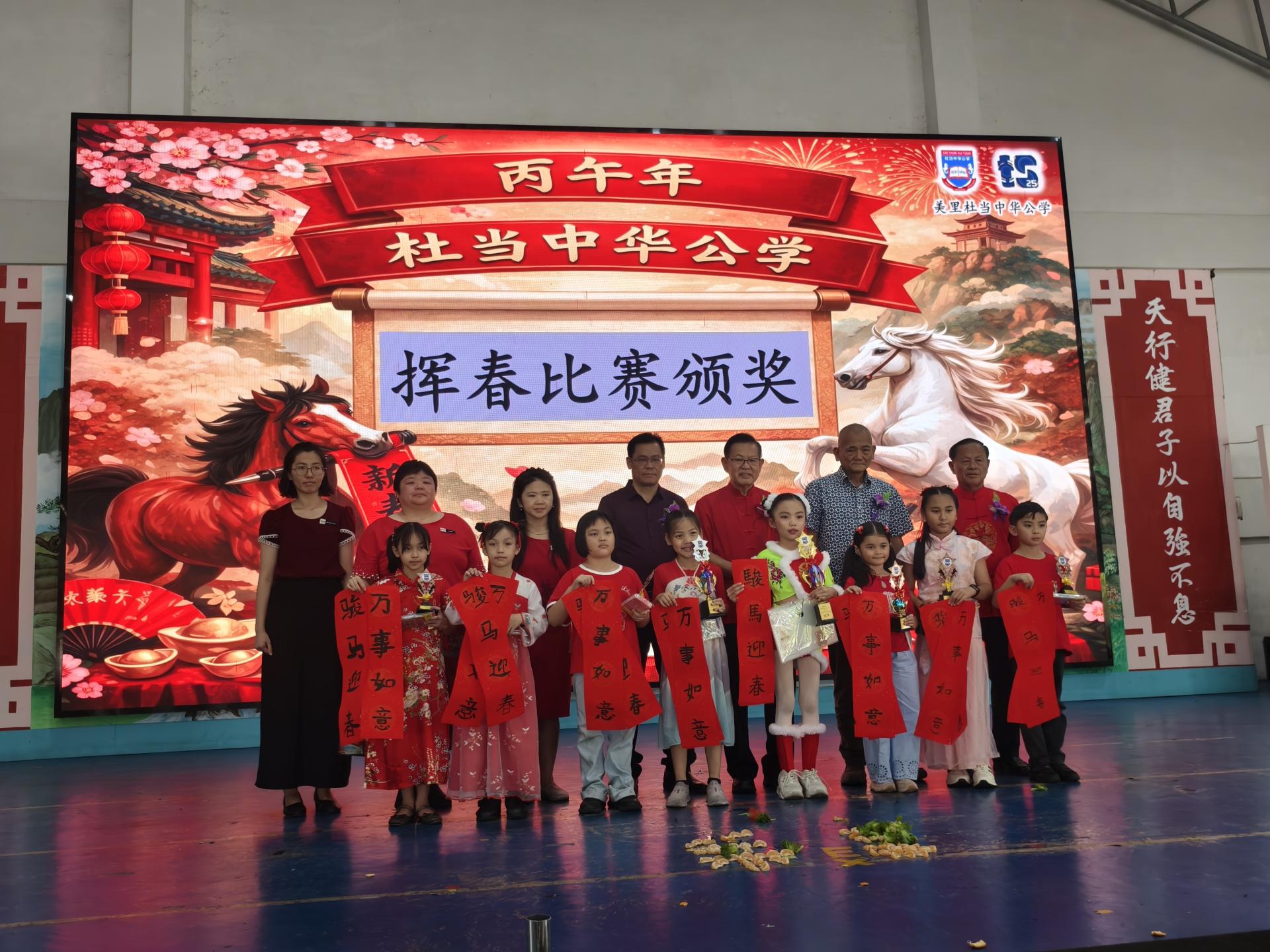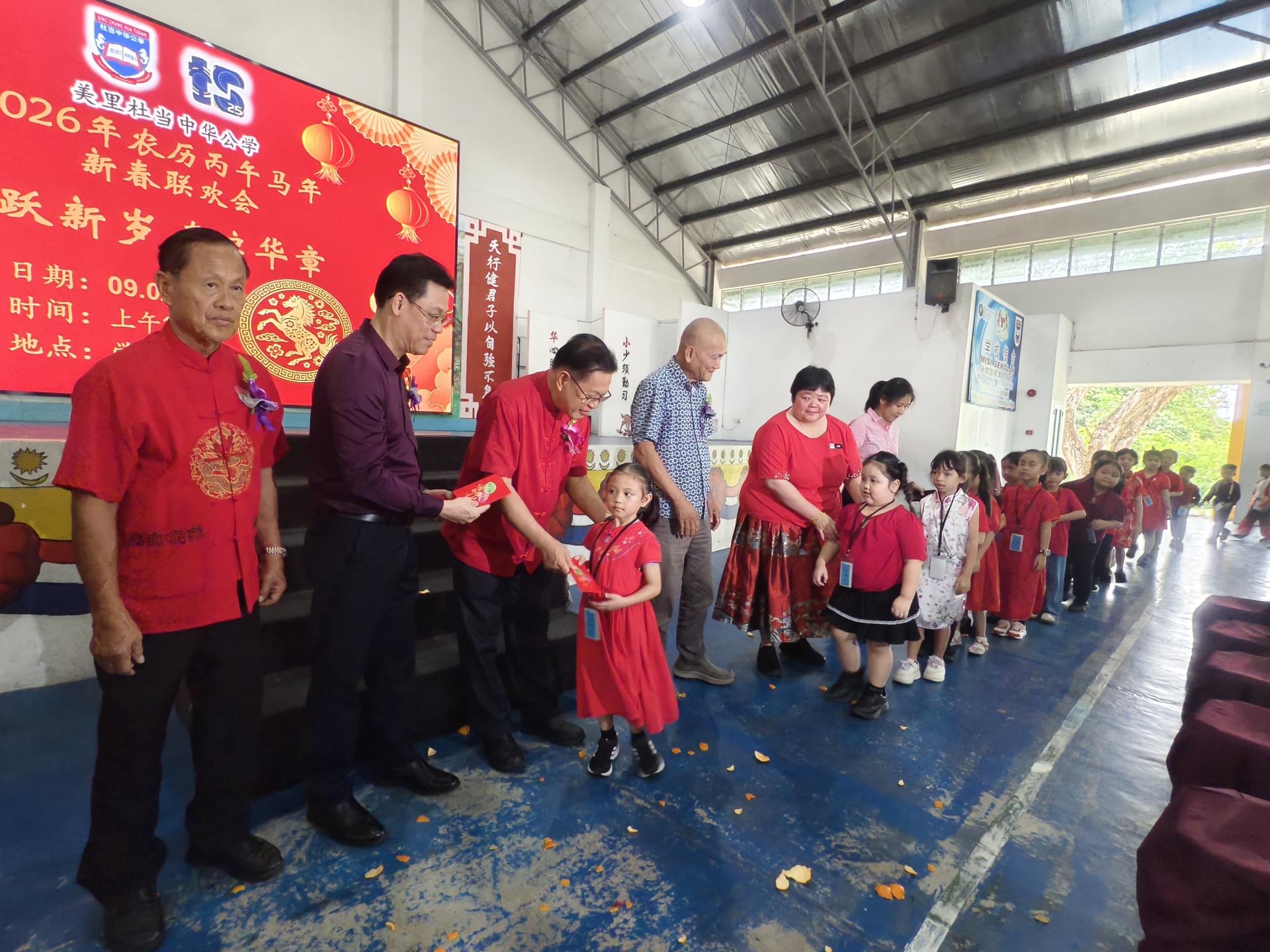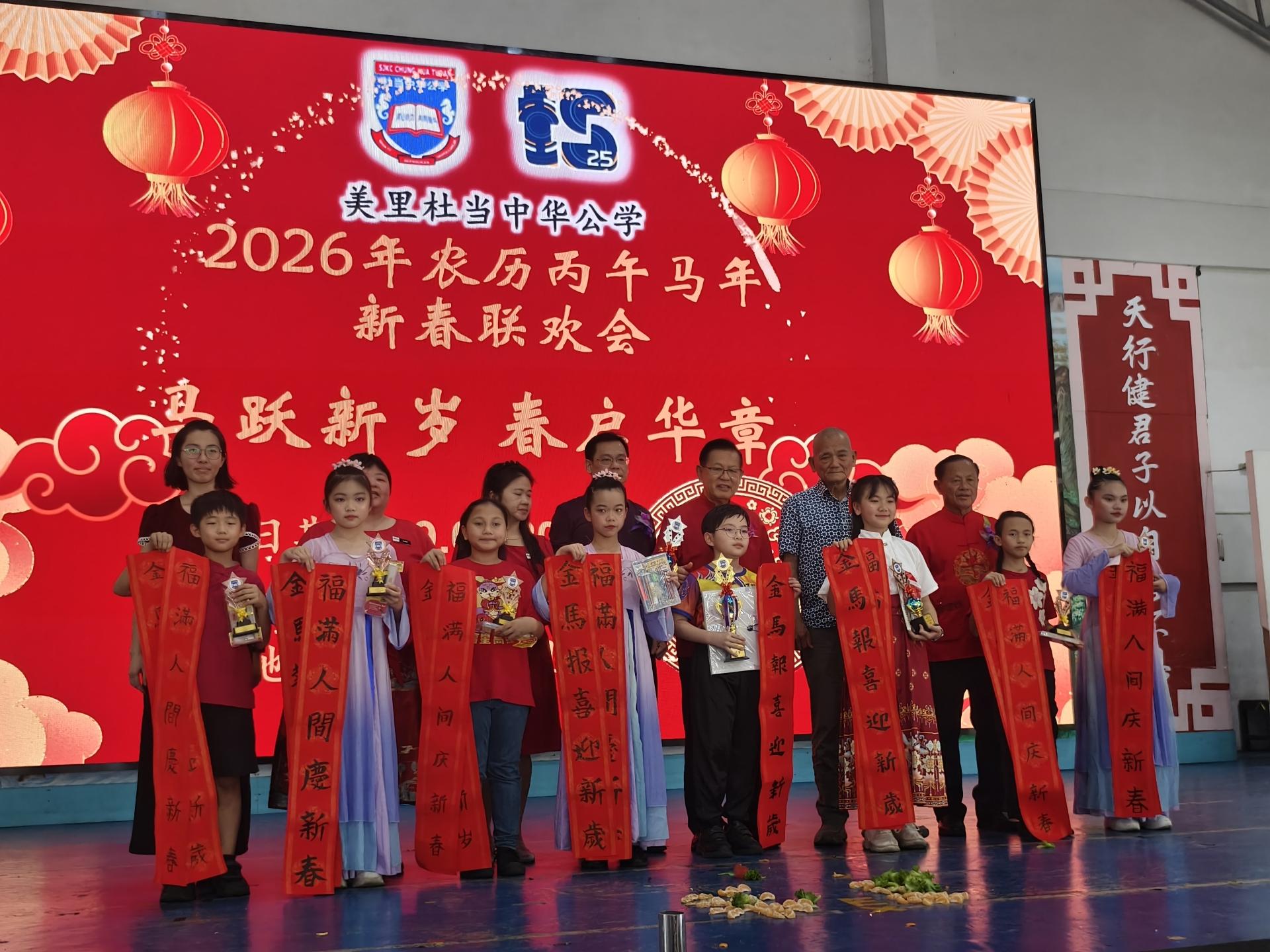 大会同时颁发2026年班级新春布置比赛奖及校内挥春比赛奖,并向舞狮与舞龙团队分派红包与感谢状,校方也向学生派发新春红包,传递祝福与关怀。