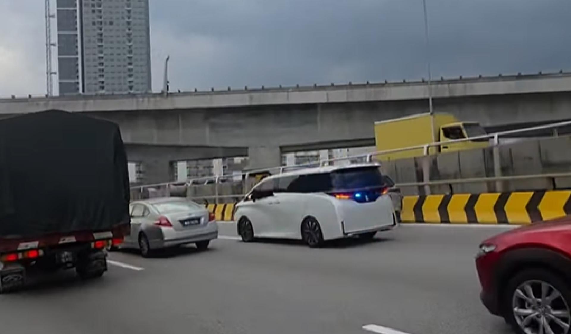 他重申,无论如何,视频中所显示的行为,涉嫌触犯1959年交通工具(构造与使用)条规第138(1)条文(禁止非获准的紧急车辆安装闪烁警示灯)