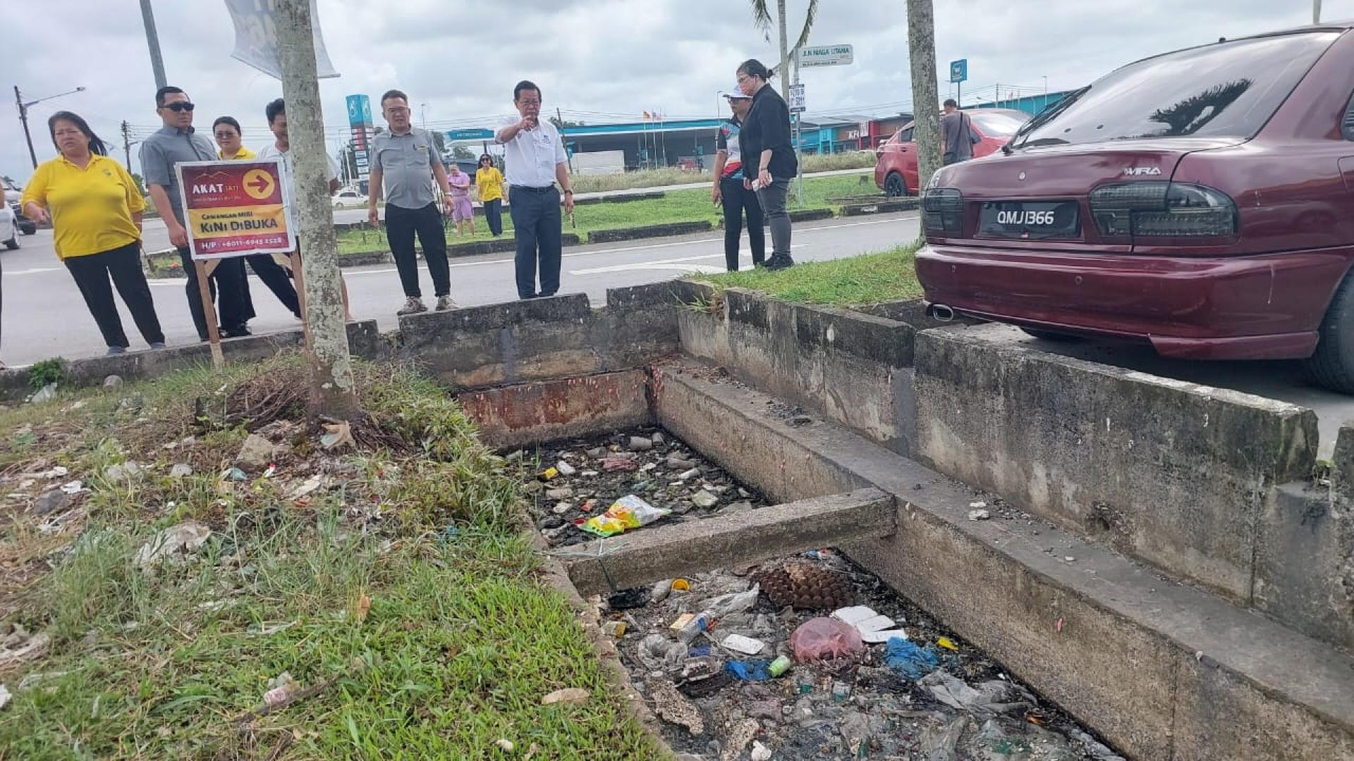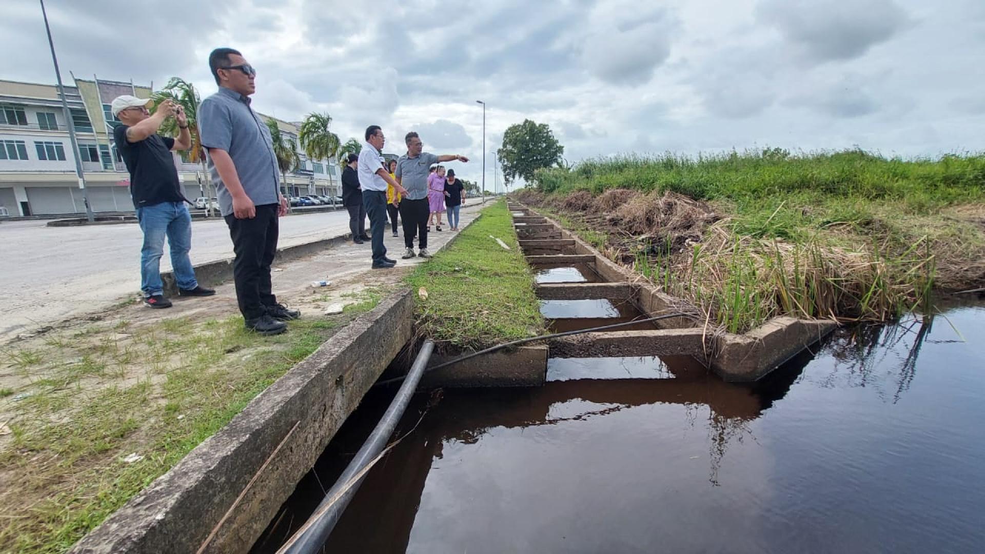 随行者包括美里市议员熊千雨及市政局工程部人员。一行人先后前往迪沙史纳汀知识路商业店前的排水沟、毗邻的商业路(Jalan Niaga Utama),以及查迪路轻工业区,实地了解排水沟清理工作的进展情况。