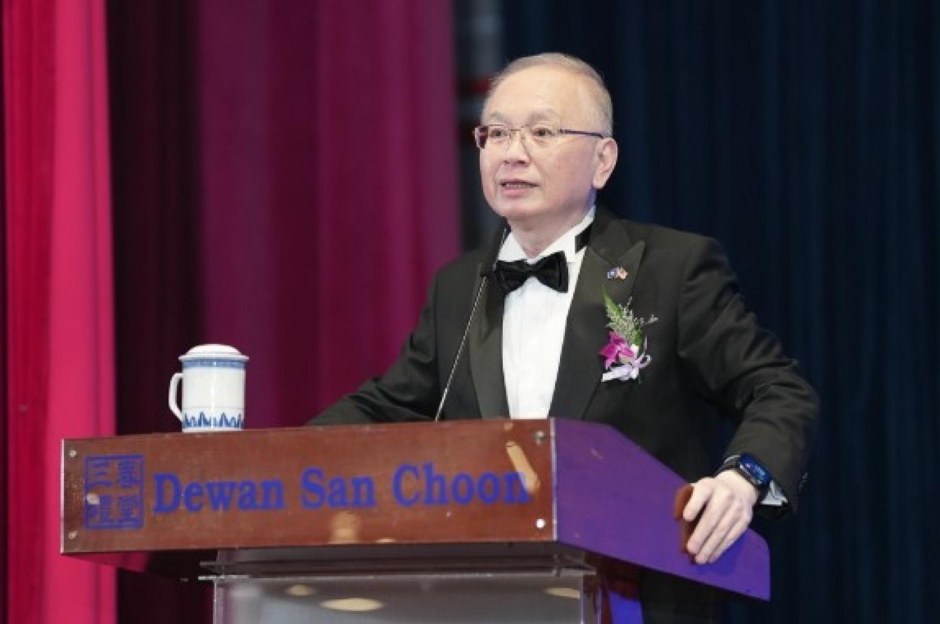 他也在致辞中回顾几位马青前任总团长的事迹,为族群和国家贡献良多,如拿督斯里纪永辉发扬武术,把武术运动带入学校;拿督叶炳汉不畏强权,在80年代华小高职事件中,带领马青捍卫华小,面对攻击,甚至被抓去坐牢;拿督王晓庭作为第一位女性马青总团长,接受党的安排上阵敌对党的强区,毫不畏惧。