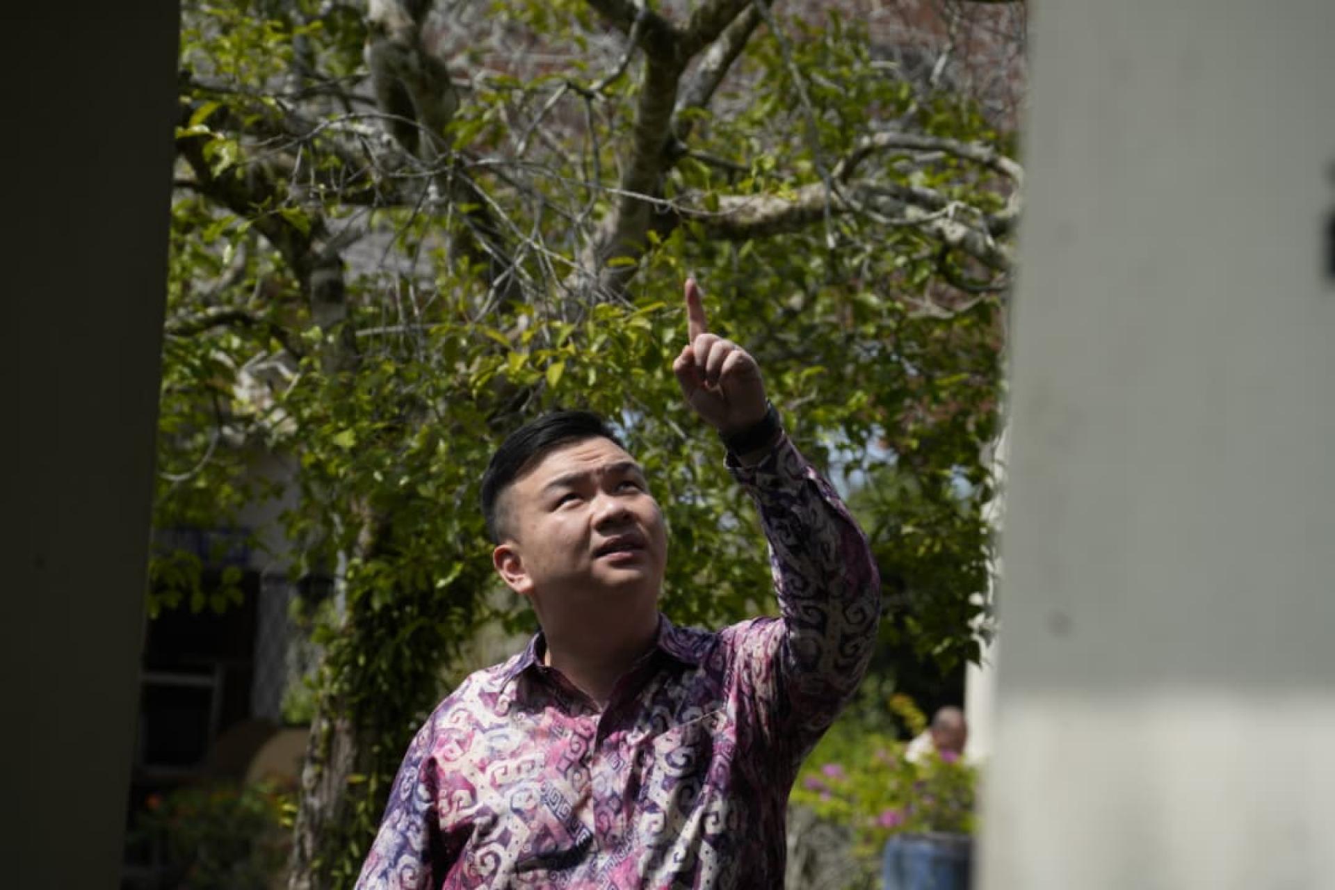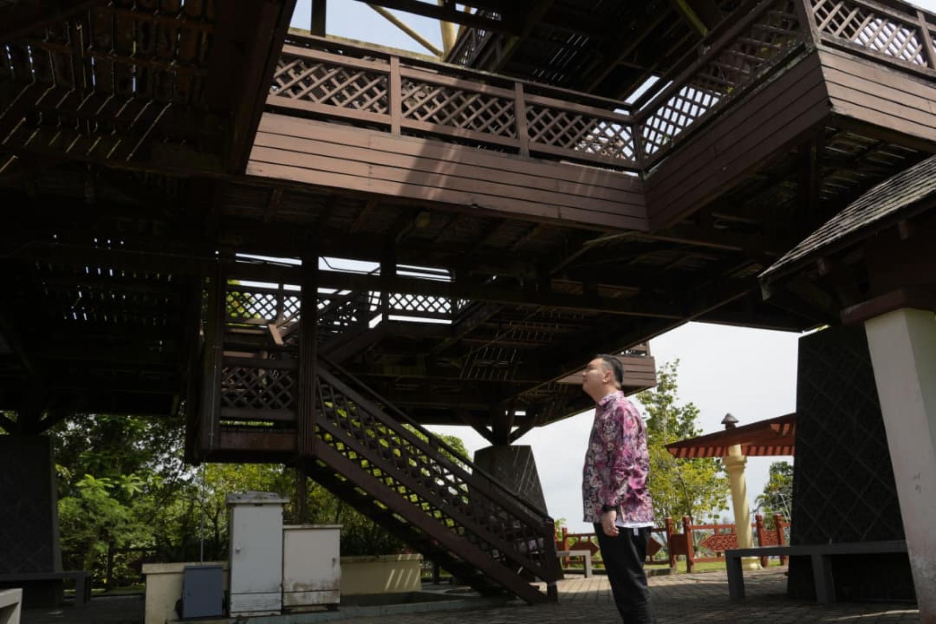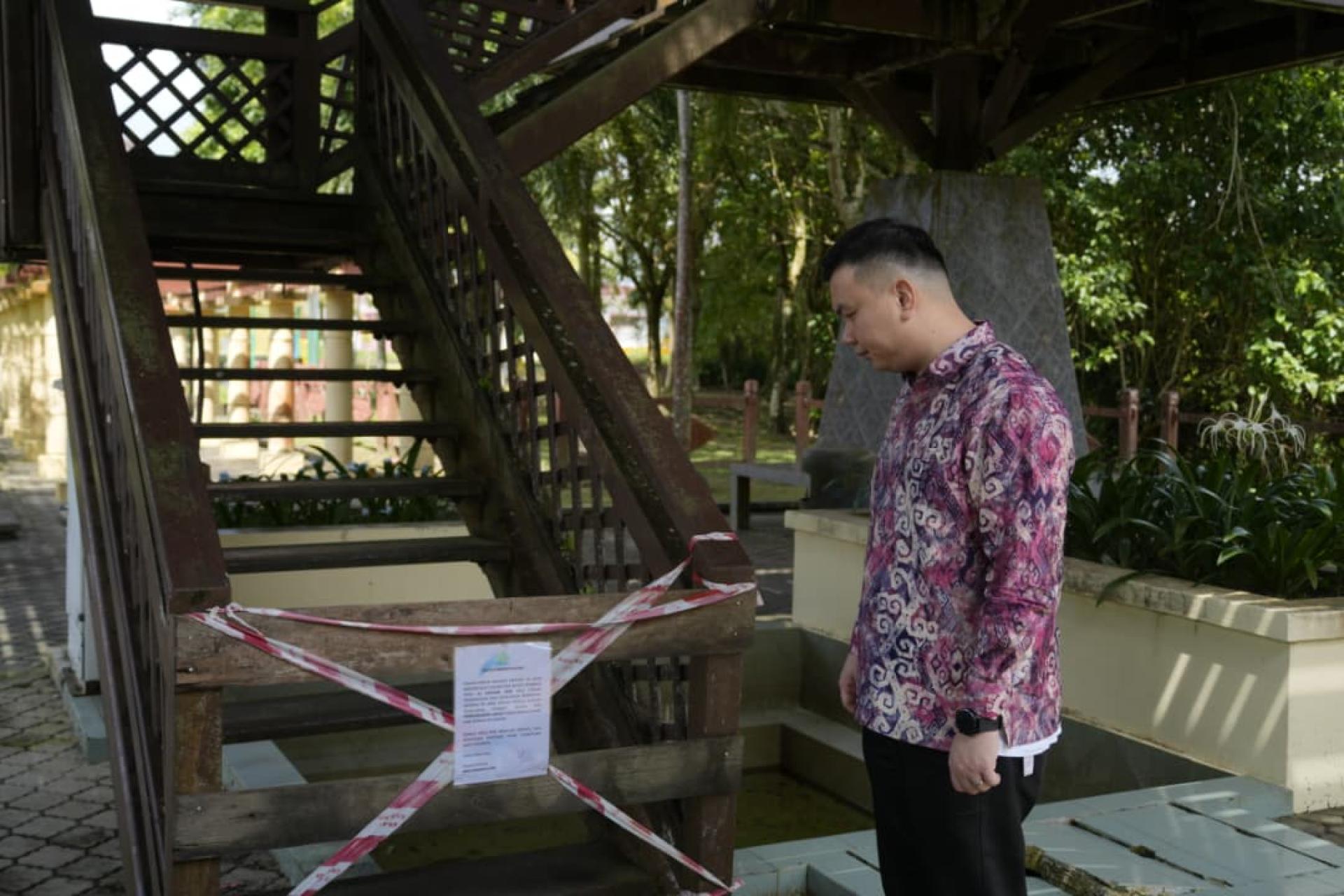 赵俊文到访美里公共公园,巡视观景塔需维修的区域。