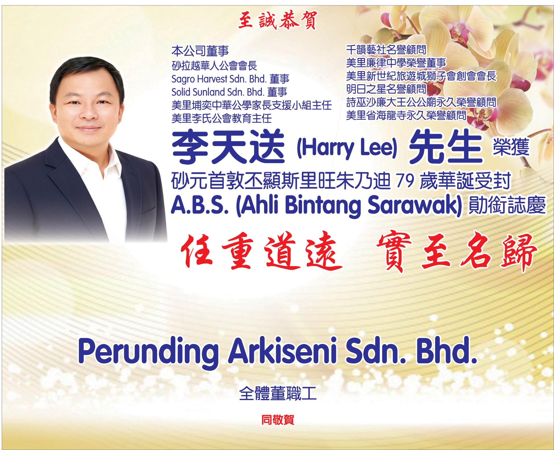 【贺词】李天送先生荣获A.B.S.勋衔志庆