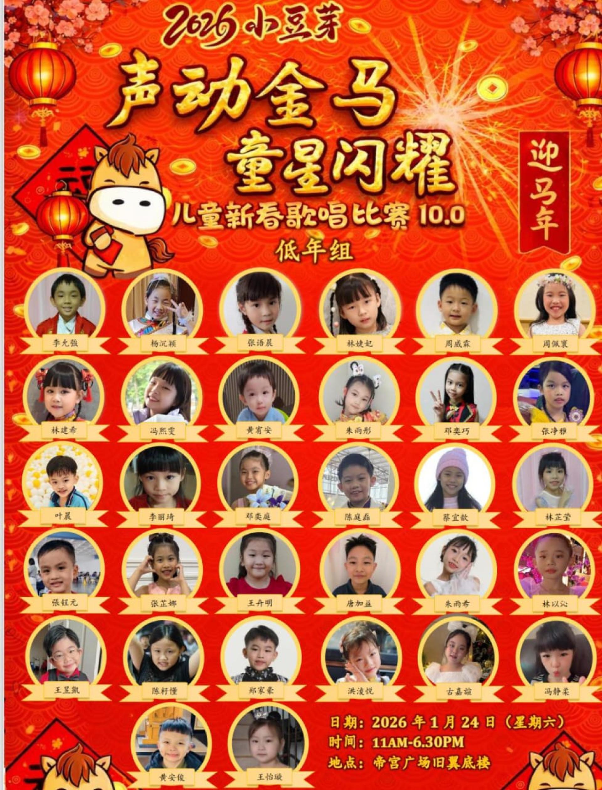 主办方诚邀民众踊跃到场,为小小歌手们加油打气,并祝愿大家在马年里行好运、马到功成,共享一场充满童真与感动的音乐新春盛会。