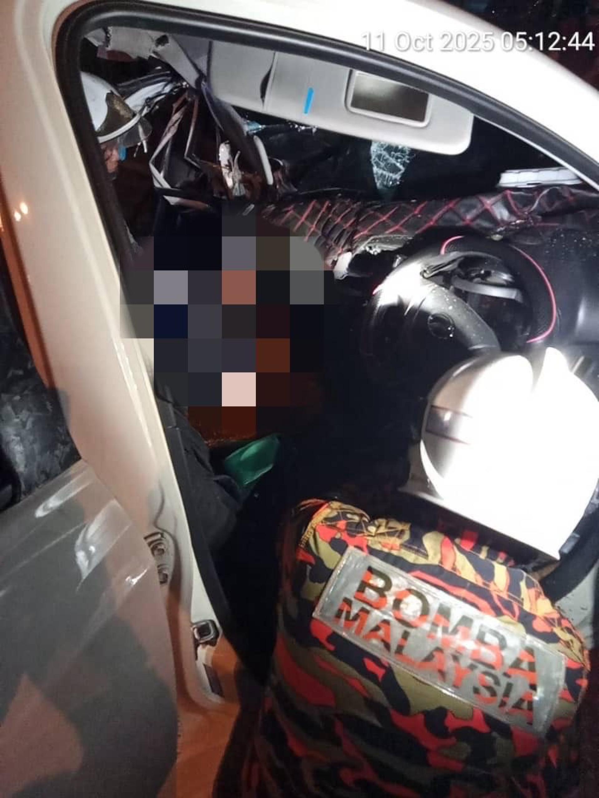 根据初步调查,涉事旅游巴士当时未载客,Axia疑不慎撞上巴士尾部,造成车内两人受伤,其中女乘客被夹在前座动弹不得。