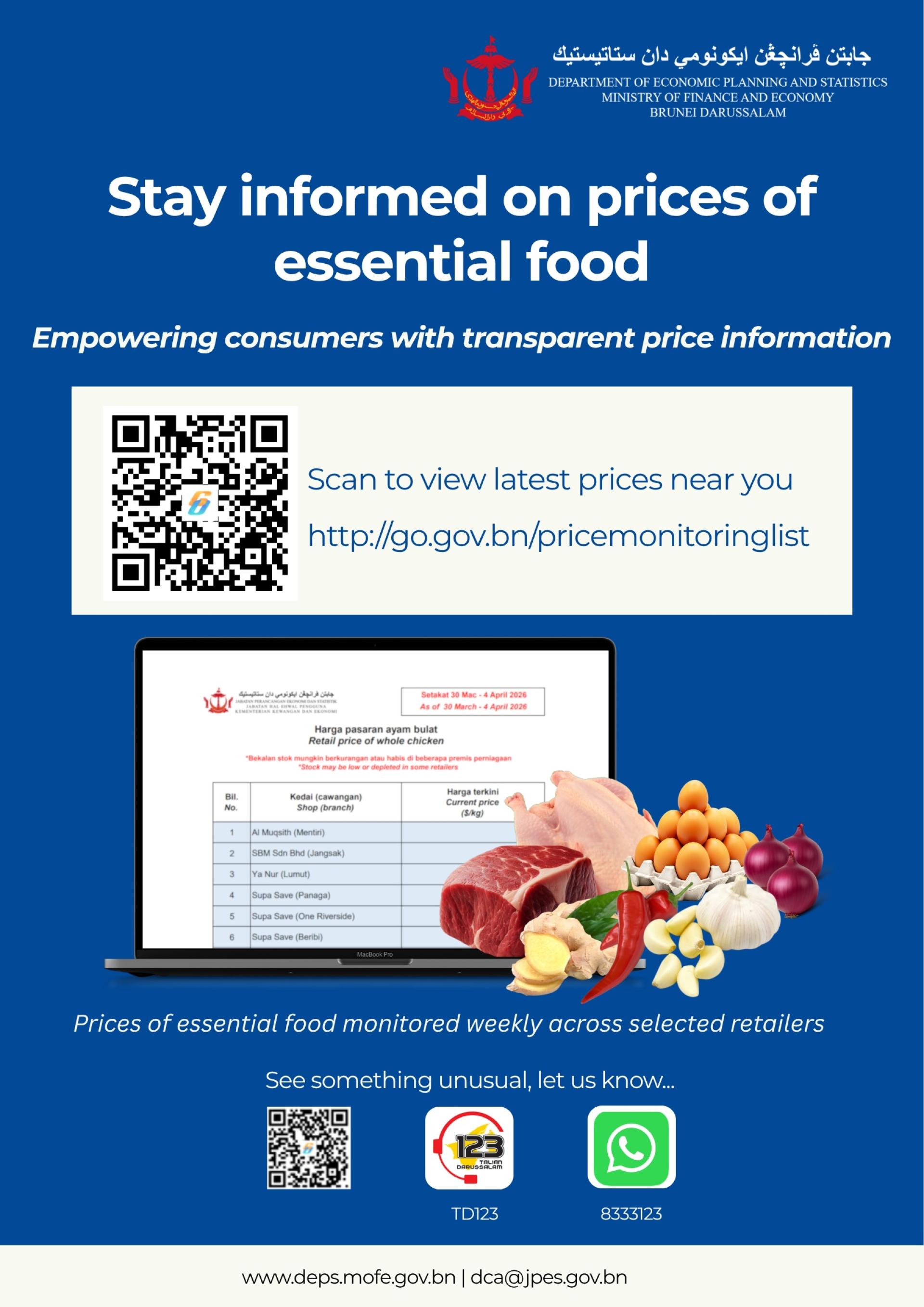 精选食品的零售价格表可通过JPES官方网站https://go.gov.bn/pricemonitoringlist获取。