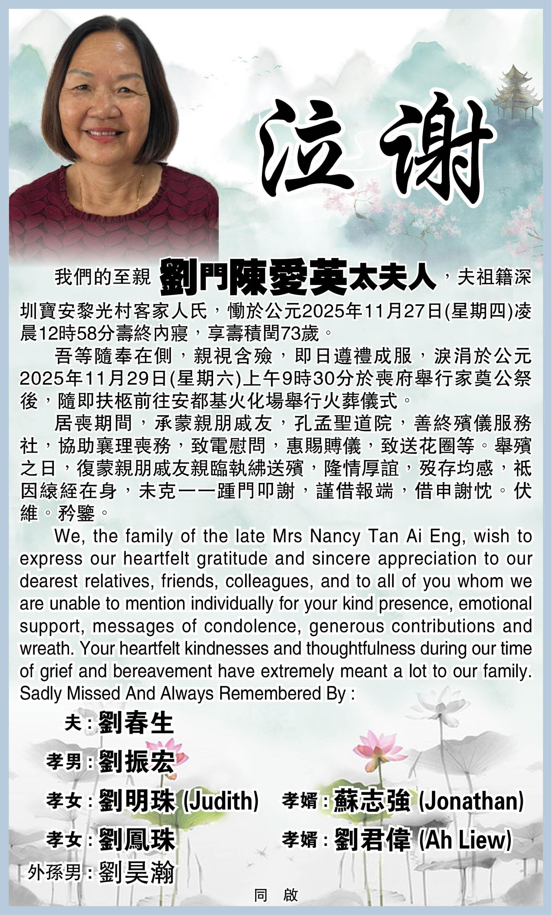 【泣谢】陳愛英