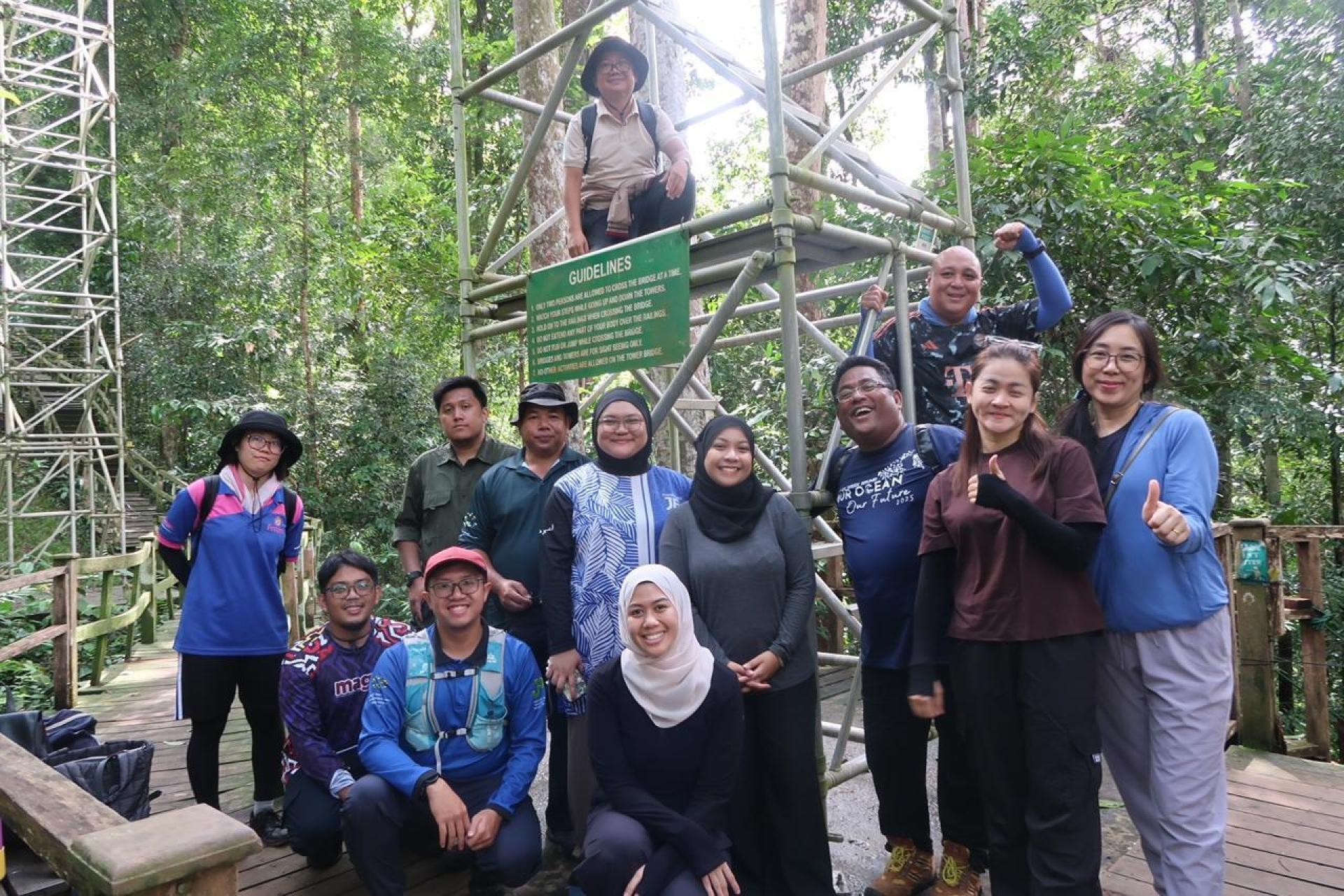 培训内容涵盖生态系统基础知识、野生动植物介绍、树种辨识,以及国家公园标志性景点——高达43米的树冠漫步道讲解与实地体验,协助导游更系统性掌握导览重点。