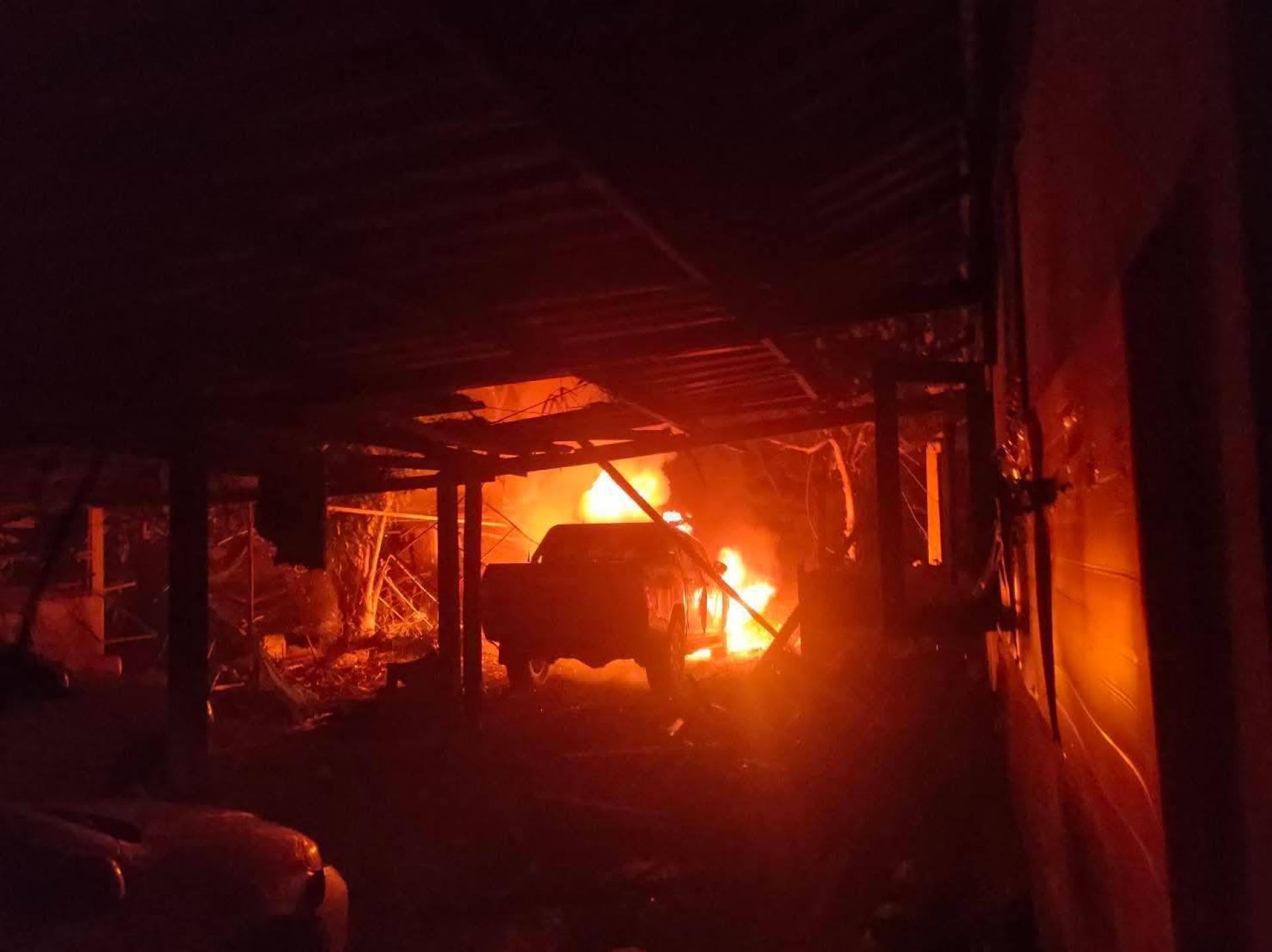 爆炸引发了猛烈火势,波及停放在警亭外的公务车辆,当地消防队接报后赶抵现场,成功将火势扑灭。现场初步勘查显示,警亭前部结构受损,多辆汽车遭毁坏。