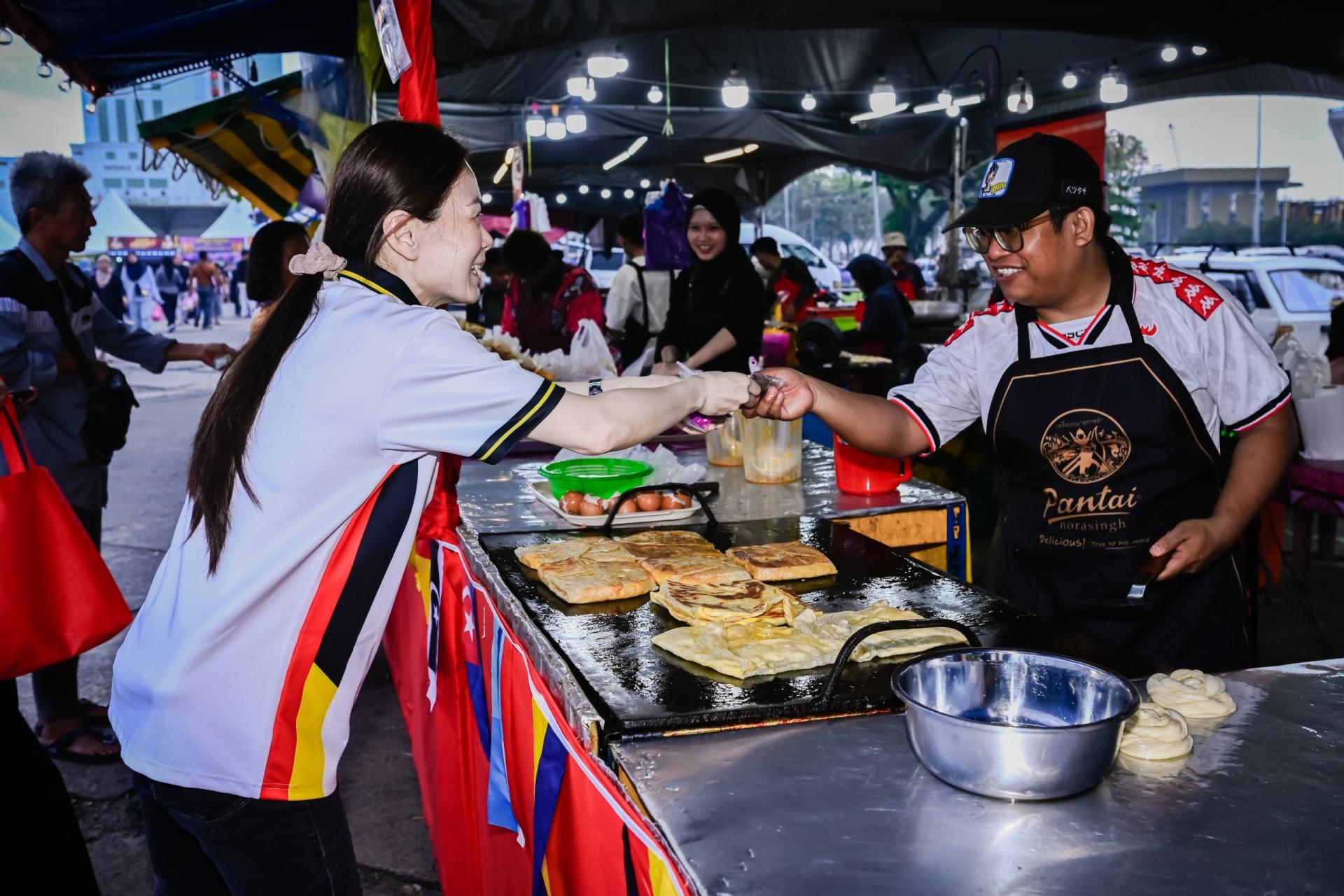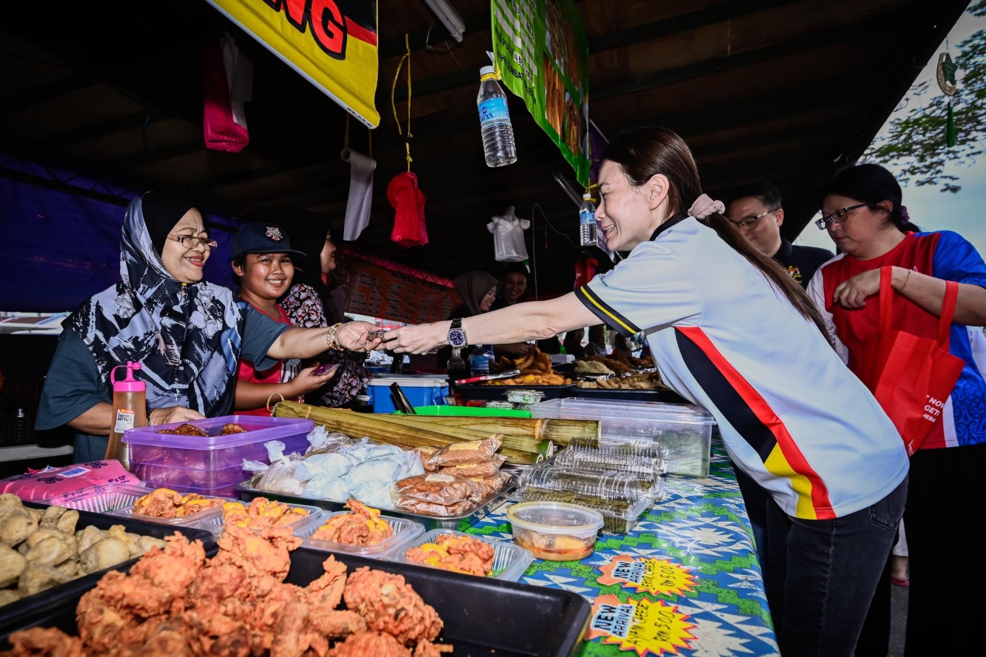 (本报诗巫16日讯)国会下议院副议长兼南兰区国会议员刘强燕于日前前往华利斋戒月市集与城市广场第二期斋戒月市集,分发椰枣予摊主及民众,献上一份祝福予穆斯林同胞们。
