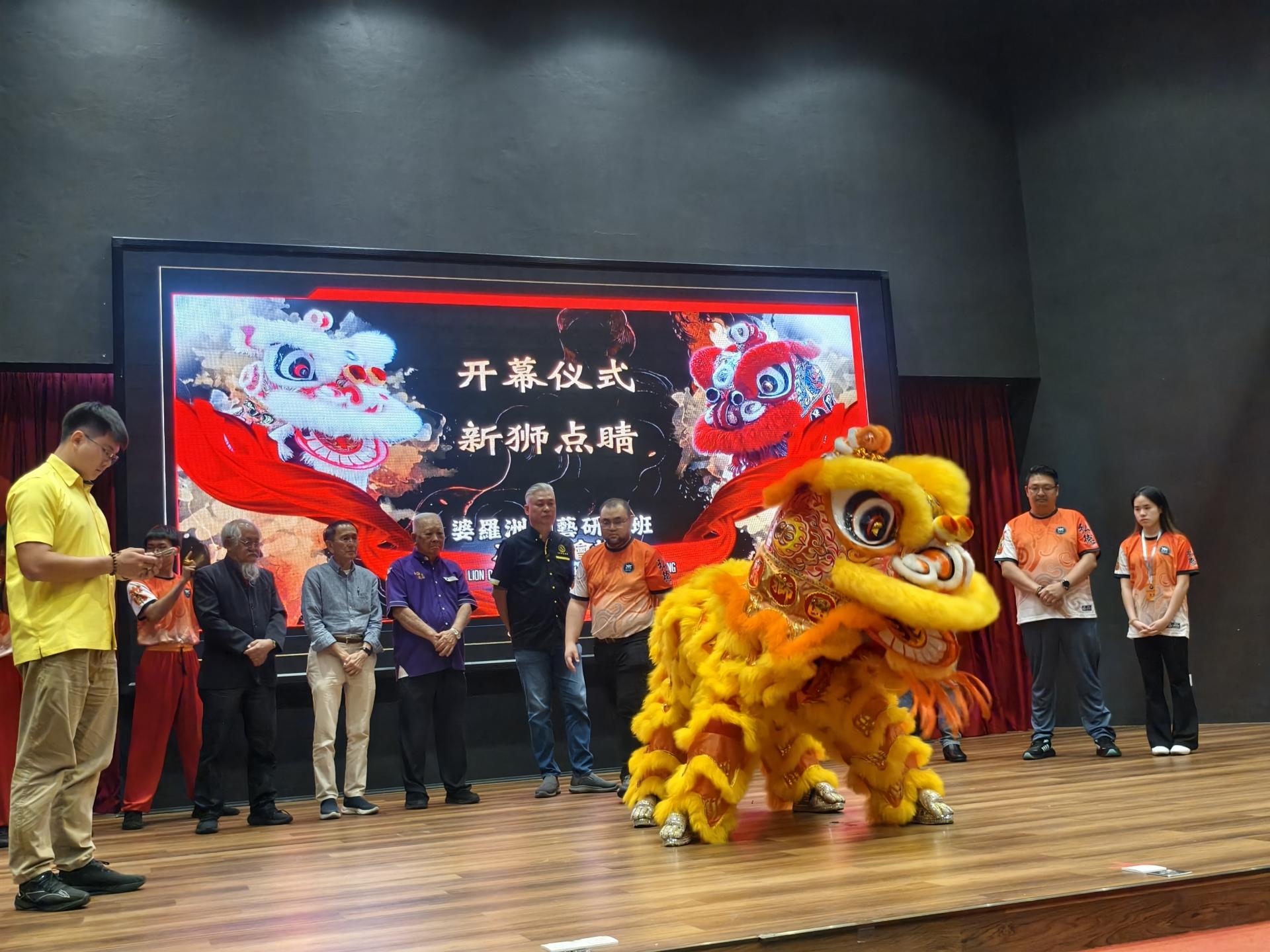 “2025年婆罗洲狮艺研习班”新狮点睛开幕仪式后,舞狮起舞。