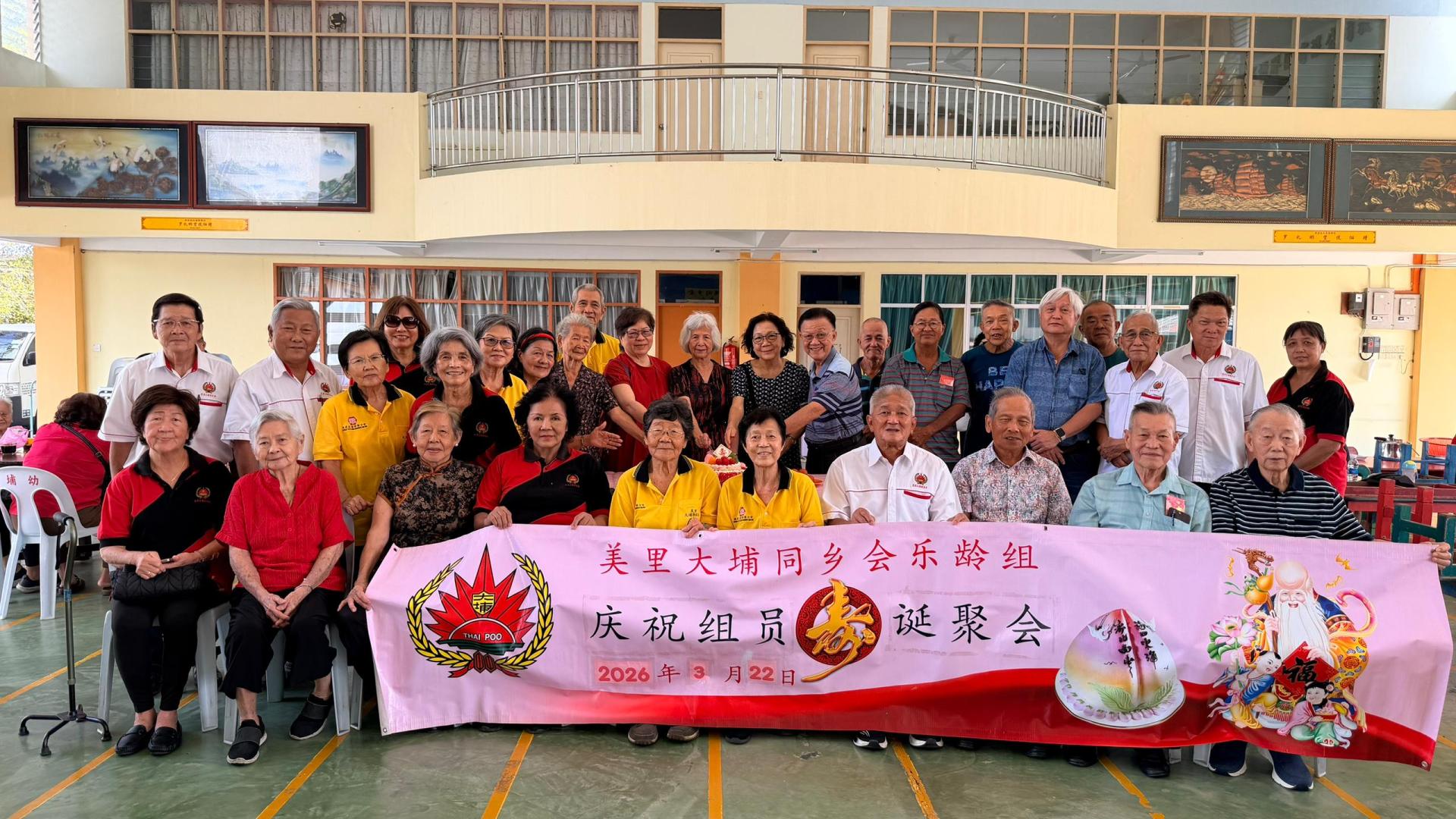 美里大埔同乡会乐龄组庆祝组员寿诞聚会合影。