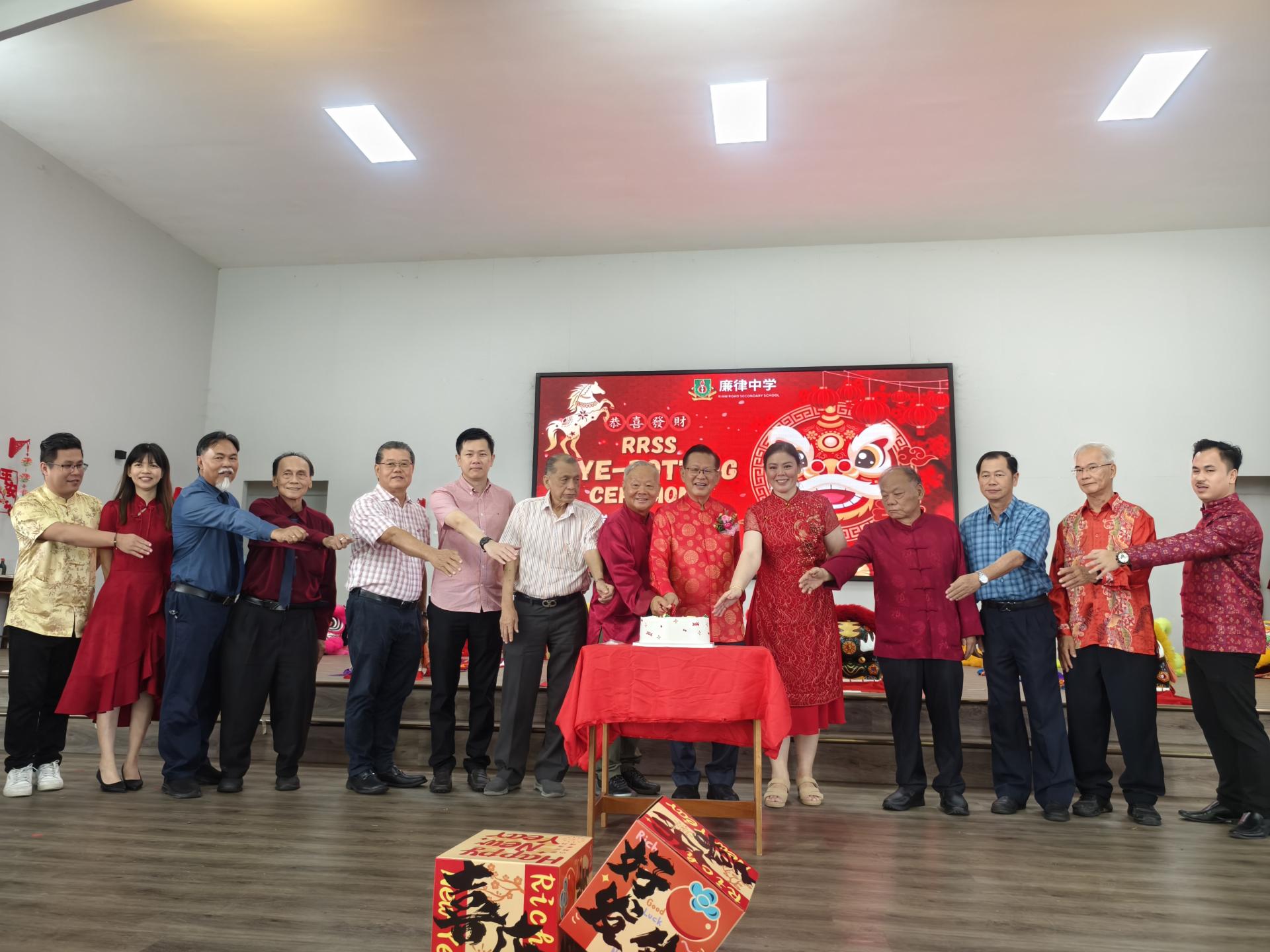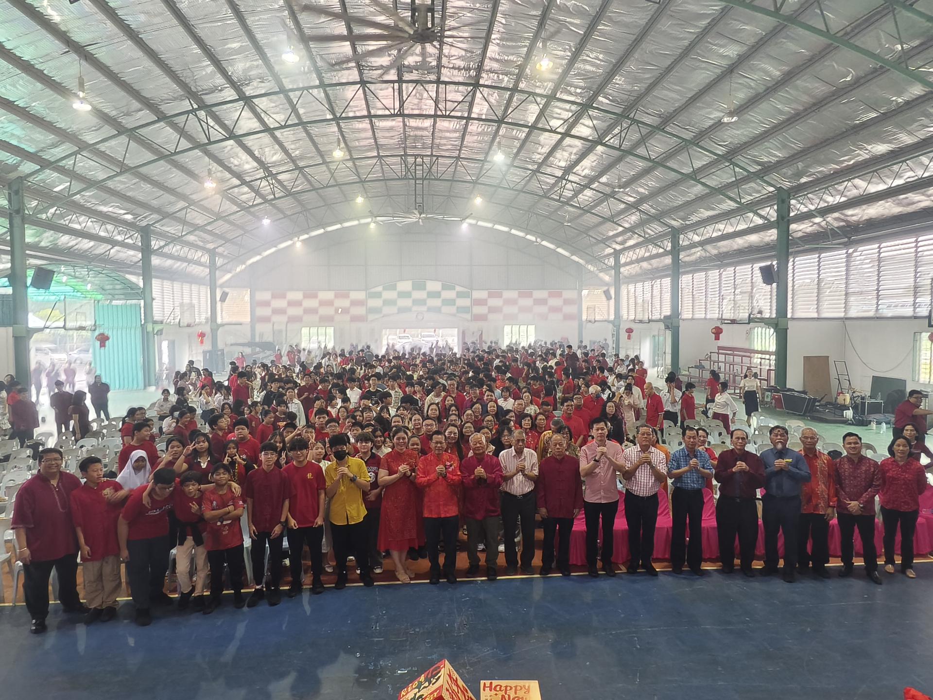 廉律中学丙午年舞狮点睛暨新春联欢活动出席者大合照。