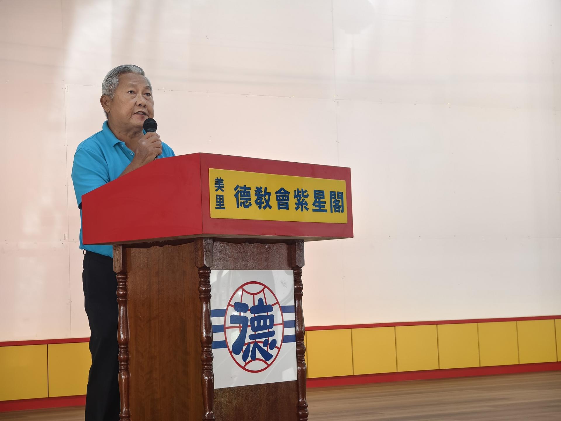 美里德教会紫星阁“丙午年德总青第五届全国挥春赛”筹备会主席兼副阁长杨贤曾在致词。