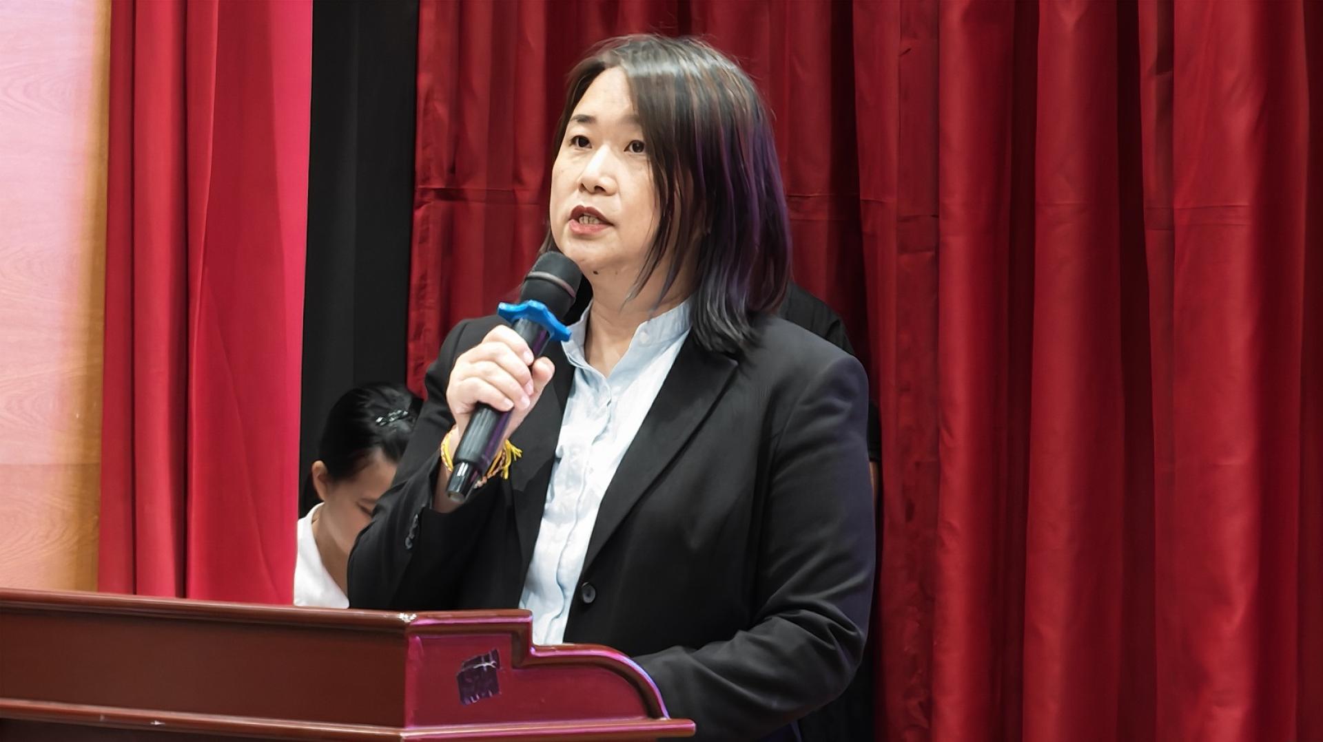 美里培民中学校长贝美娇致欢迎词。