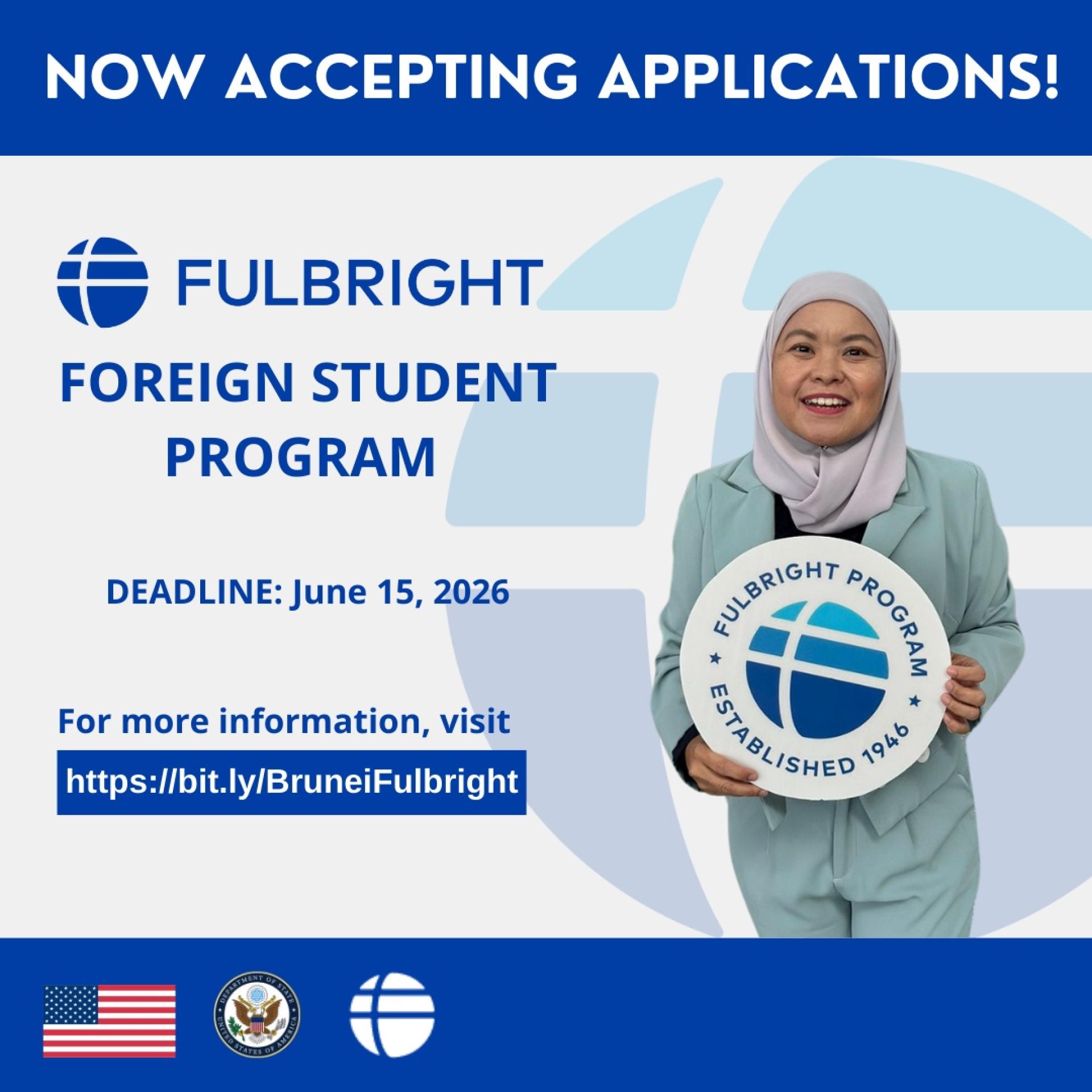 (斯市11日讯)美国驻汶莱大使馆欣然宣布,2027-2028年度富布赖特外国学生项目现已开放申请。汶莱公民和无国籍永久居民均可申请这项享有盛誉的奖学金,赴美攻读研究生学位。