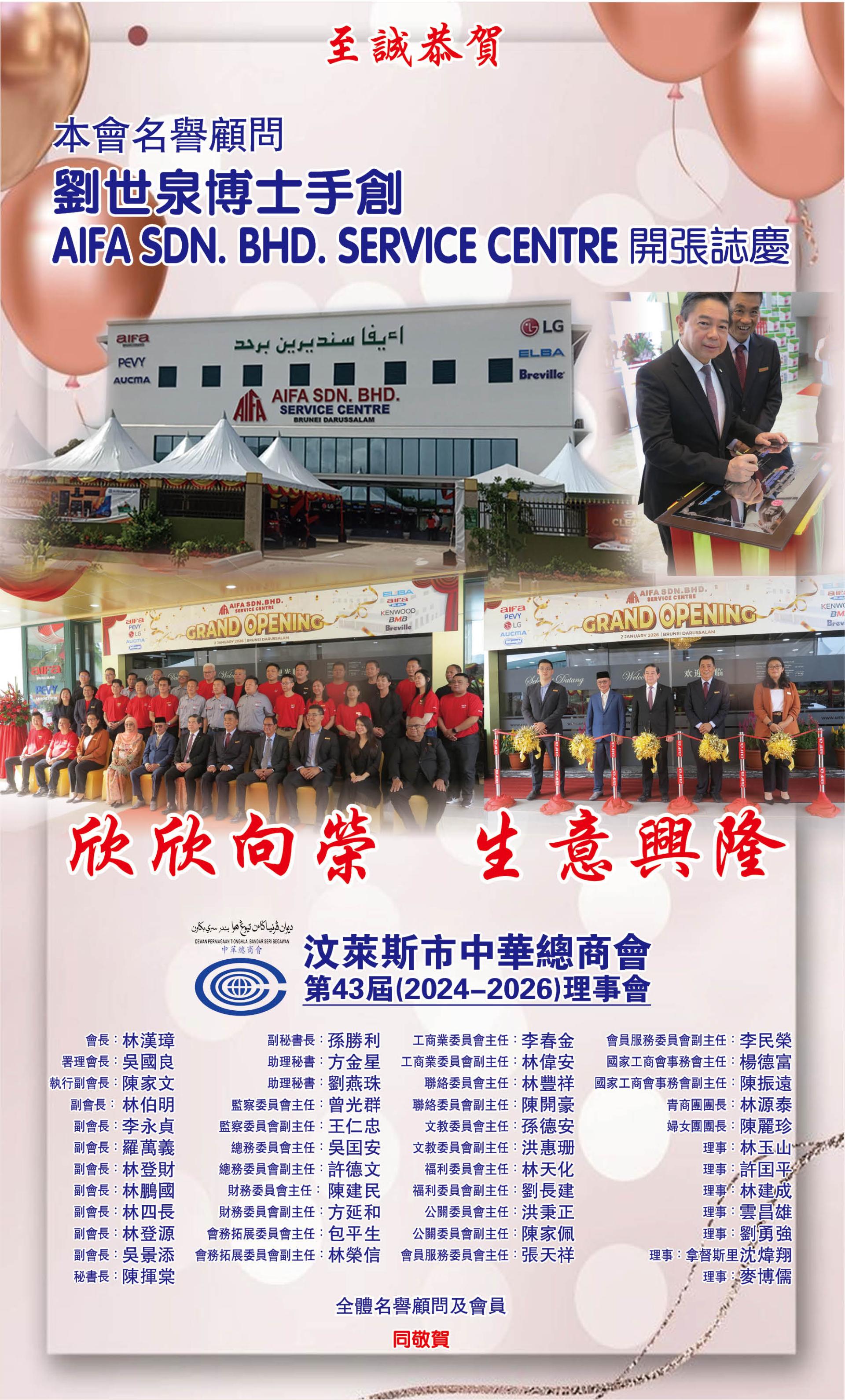賀AIFA SDN. BHD. SERVICE CENTRE 開張誌慶