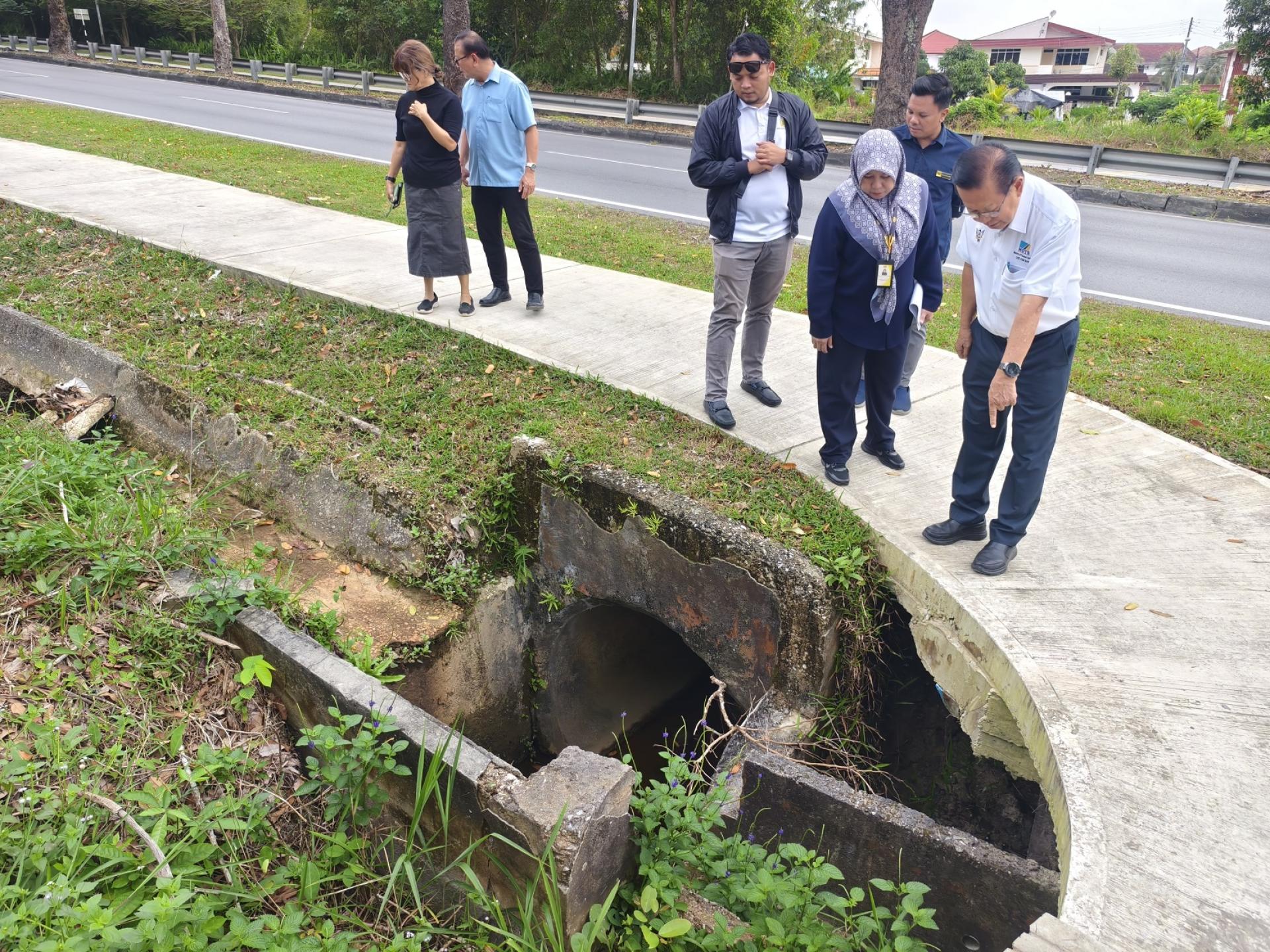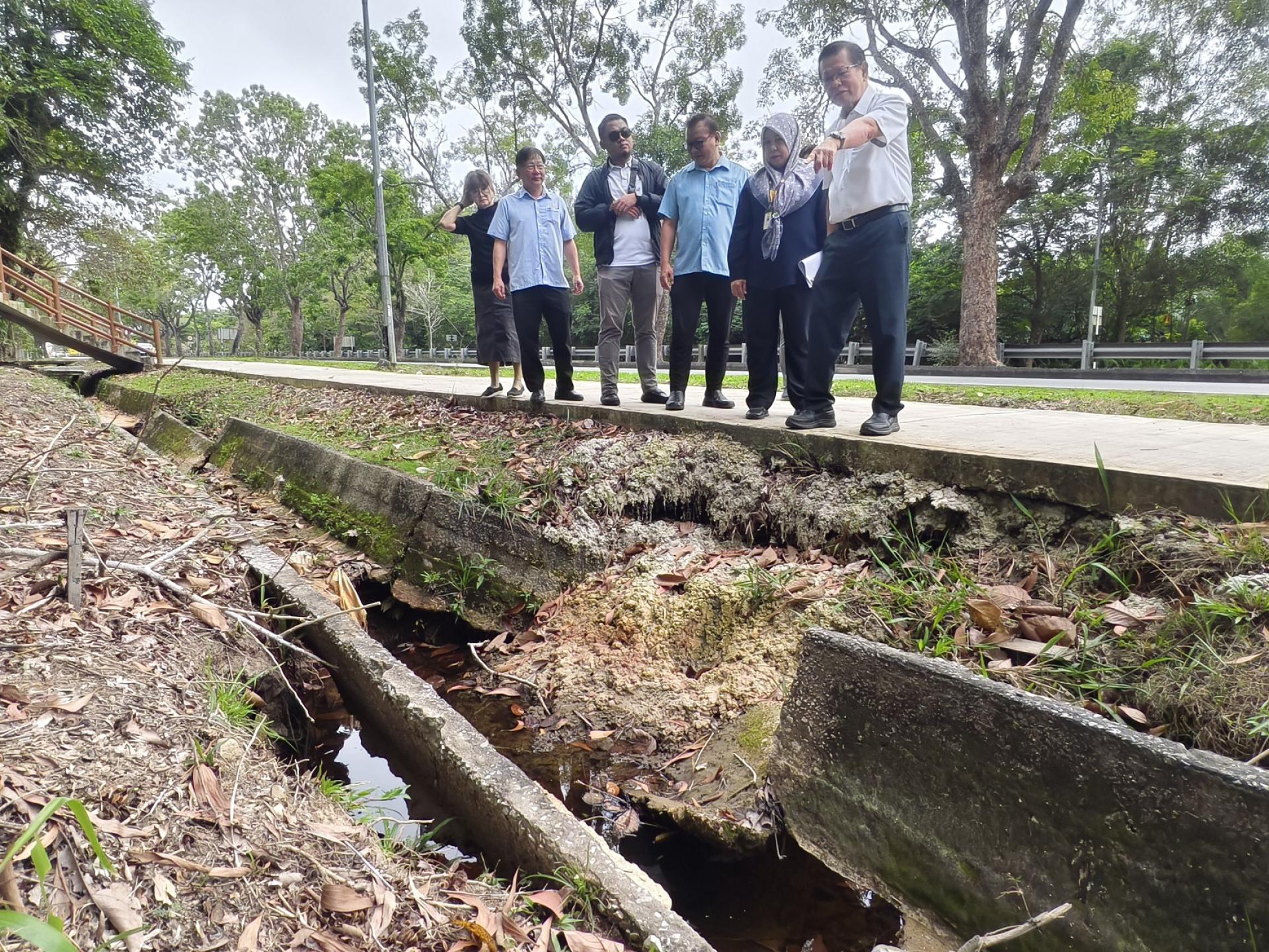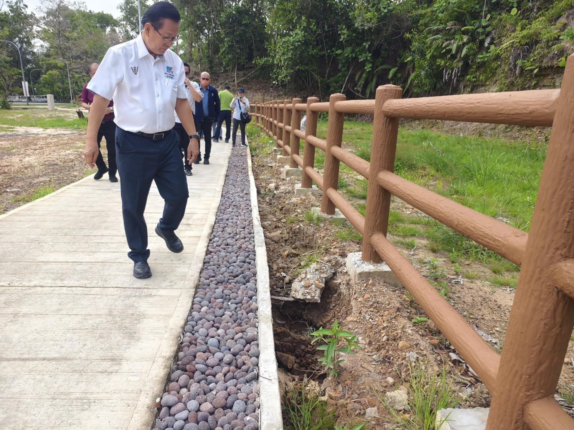 (本报美里讯)砂拉越交通部长兼史纳汀区州议员拿督斯里李景胜今早前往美里公共公园岩石悬崖公园(Taman Awam Miri Rock Cliff Park),巡视当地因长期侵蚀导致排水沟及桥涵结构坍塌的问题,并指示相关单位尽快采取紧急修复行动。
