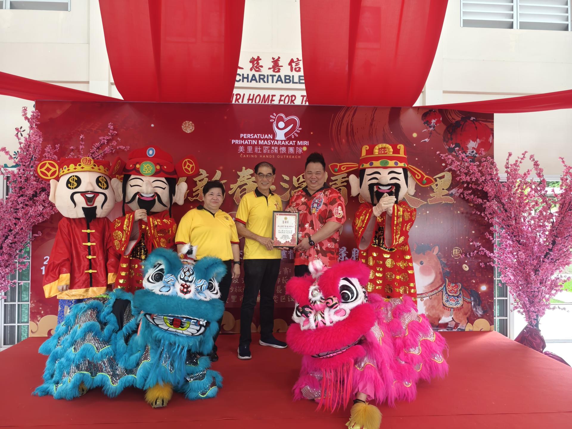 同时,现场安排舞狮表演为长辈们助兴,寓意驱邪迎福、吉祥如意,让欢乐气氛充满整个老人之家。黄金凤也感谢两位州议员、美里威胜体育会龙麒狮团领队及团员、所有参与筹备与付出的妇女组姐妹,以及老人之家管理层的配合与接待。