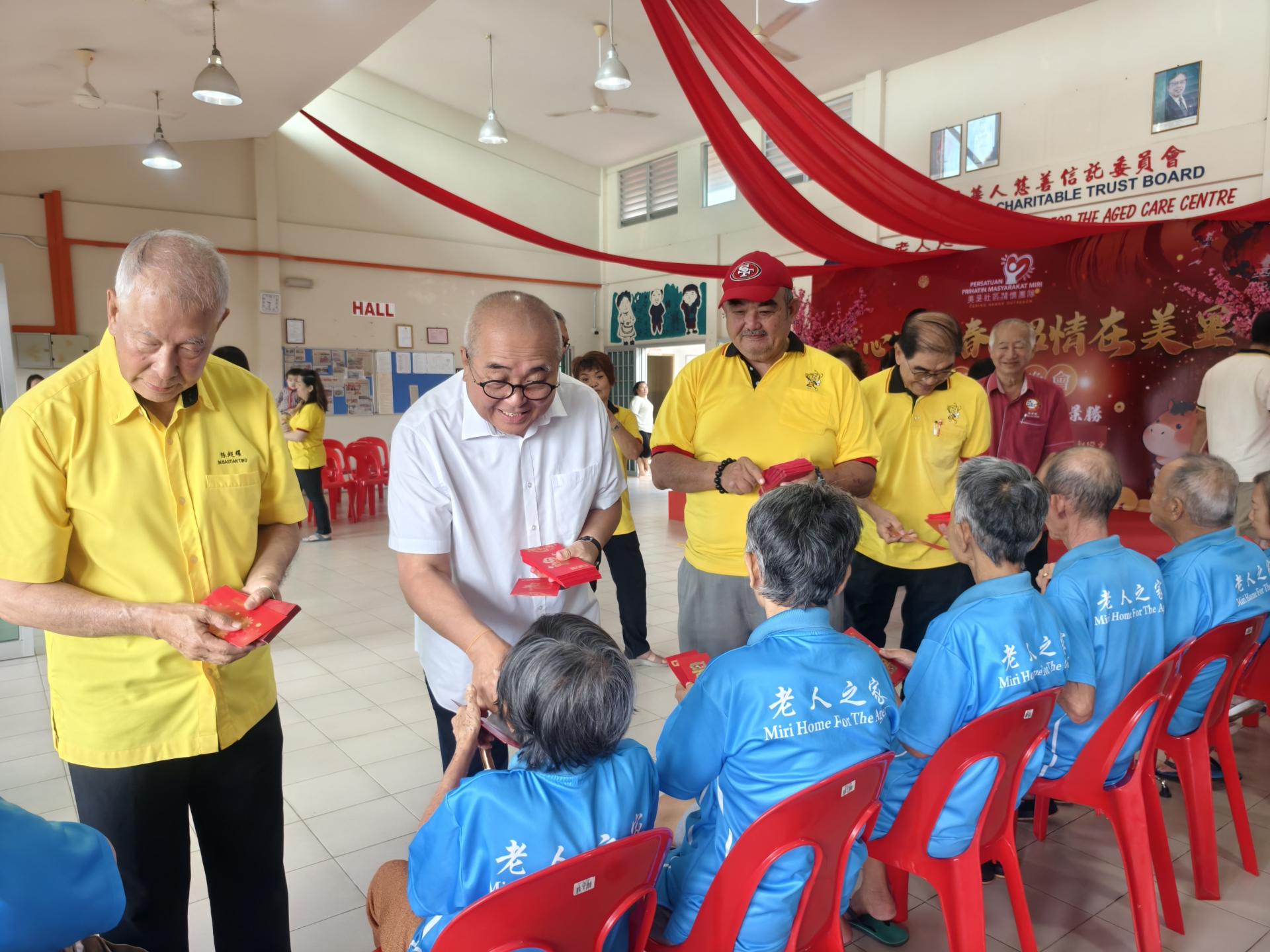 (本报美里18日讯)配合农历新年到来,砂人联党珠巴分部妇女组今早前往美里老人之家展开新春关怀活动,向长辈们派发新春红包、安排舞狮助兴,并与老人们共进午宴,现场洋溢着温馨欢乐的节庆气氛。