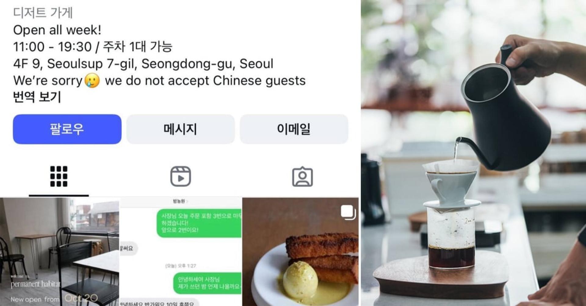 首尔咖啡厅挂“拒接中国客”公告 中国网红怒斥:等着营收崩盘
