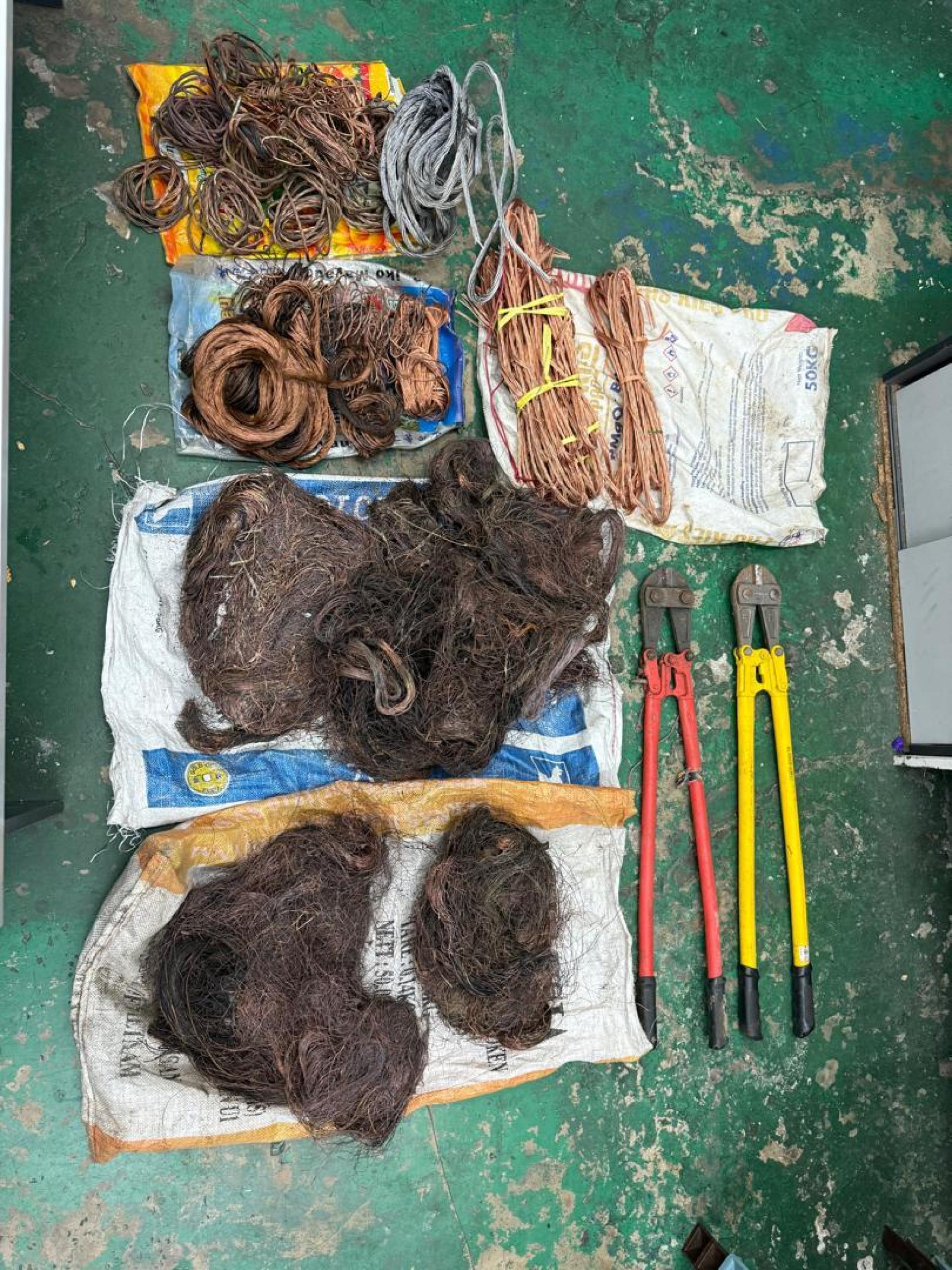 警方在行动中起获嫌犯所使用的一辆交通工具,以及多卷电缆外皮、铜电缆、称重器及剪切电缆的工具等物品,作为进一步调查的证据。