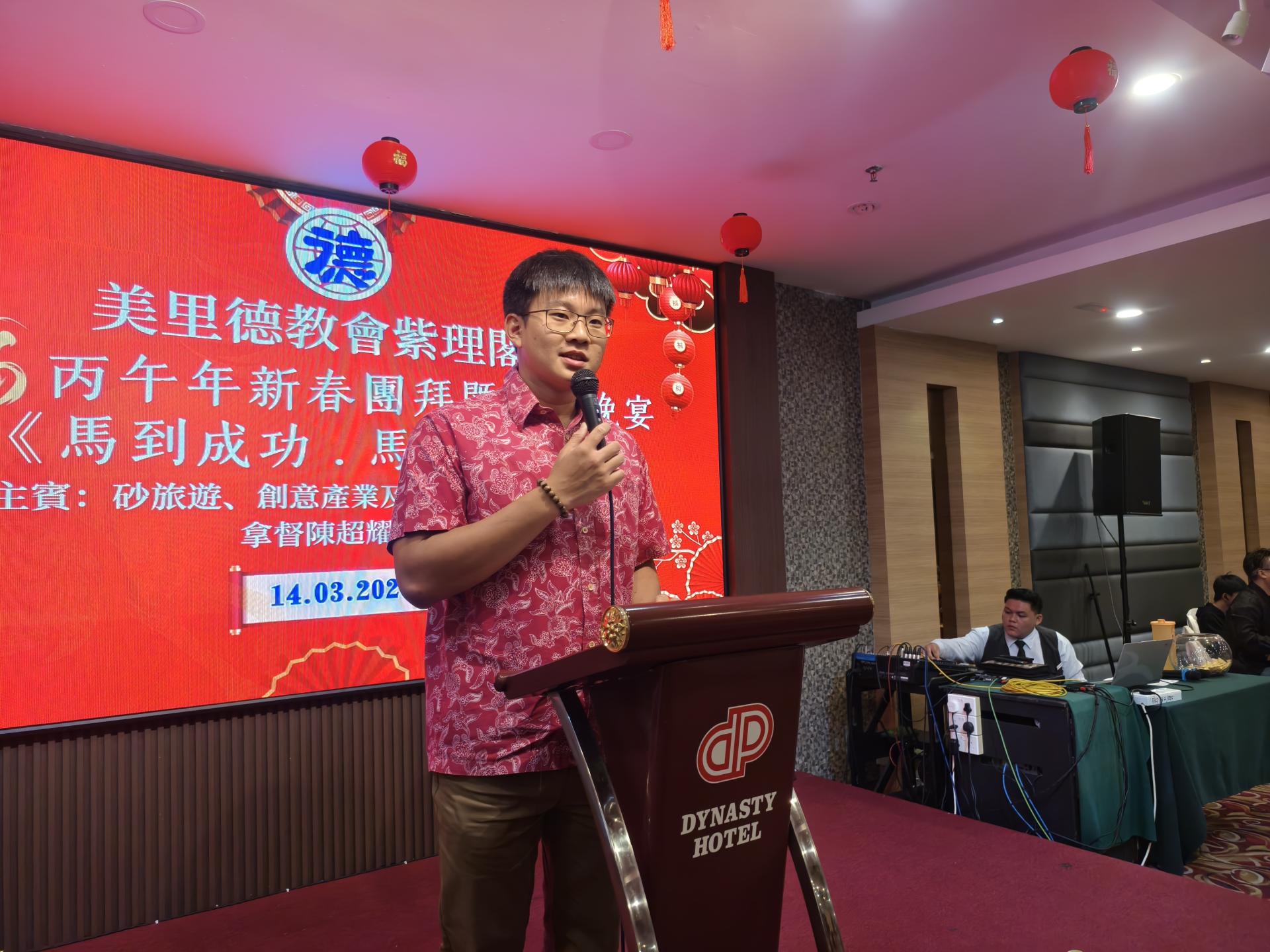 谢家洪昨晚代表陈超耀出席美里德教会紫理阁在贝园酒店举行2026丙午马年新春团拜暨敬老晚宴,主题为“马到功成·马上发财”致词时,如此表示。