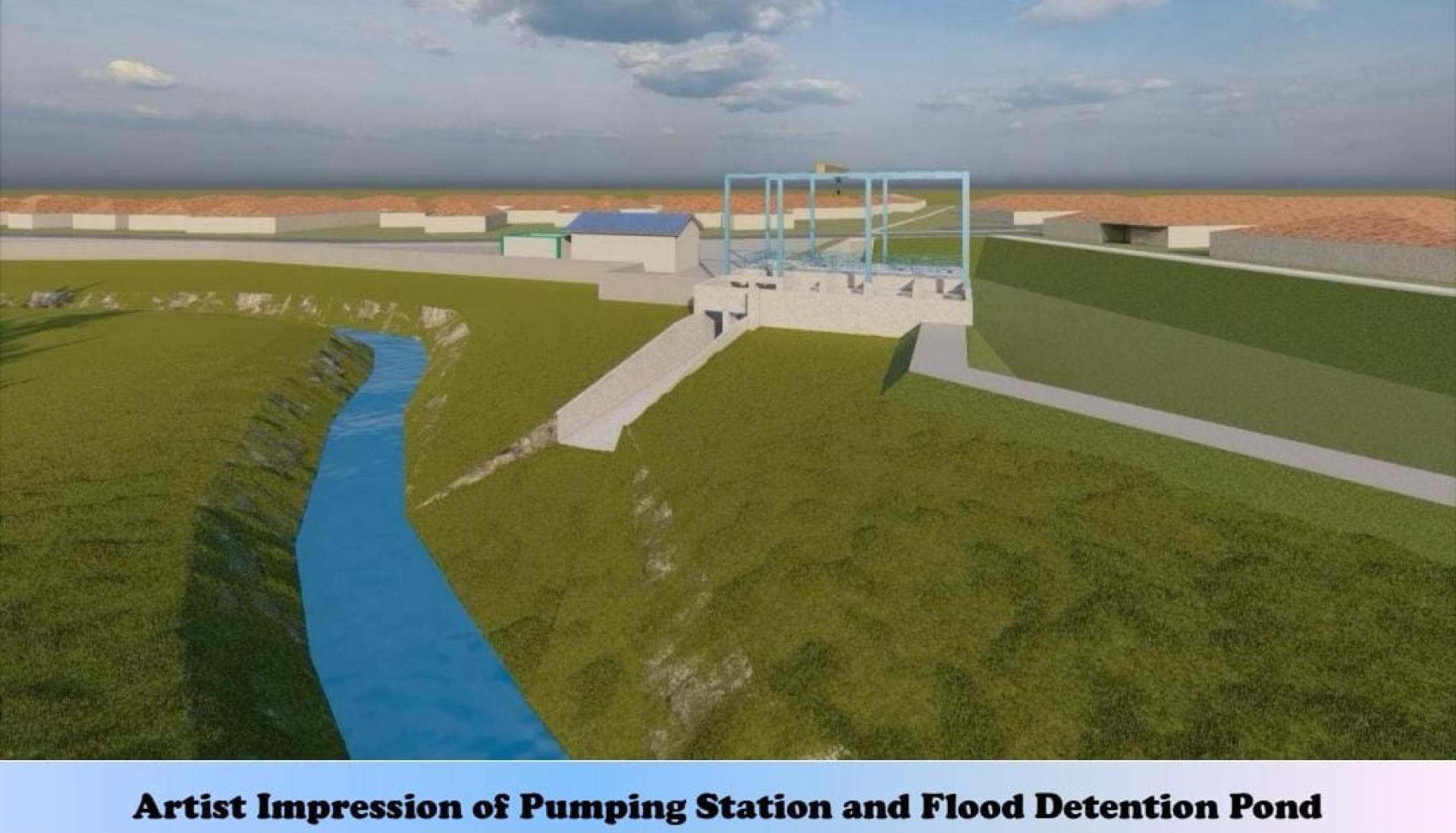 蓄水池与水泵站工程图。 也是石角区议员的沈桂贤指出,石角选区防洪项目的第一及第二期工程总耗资约5100万令吉,这笔数额不包括石角区内砂拉越河沿岸甘榜的河堤工程。
