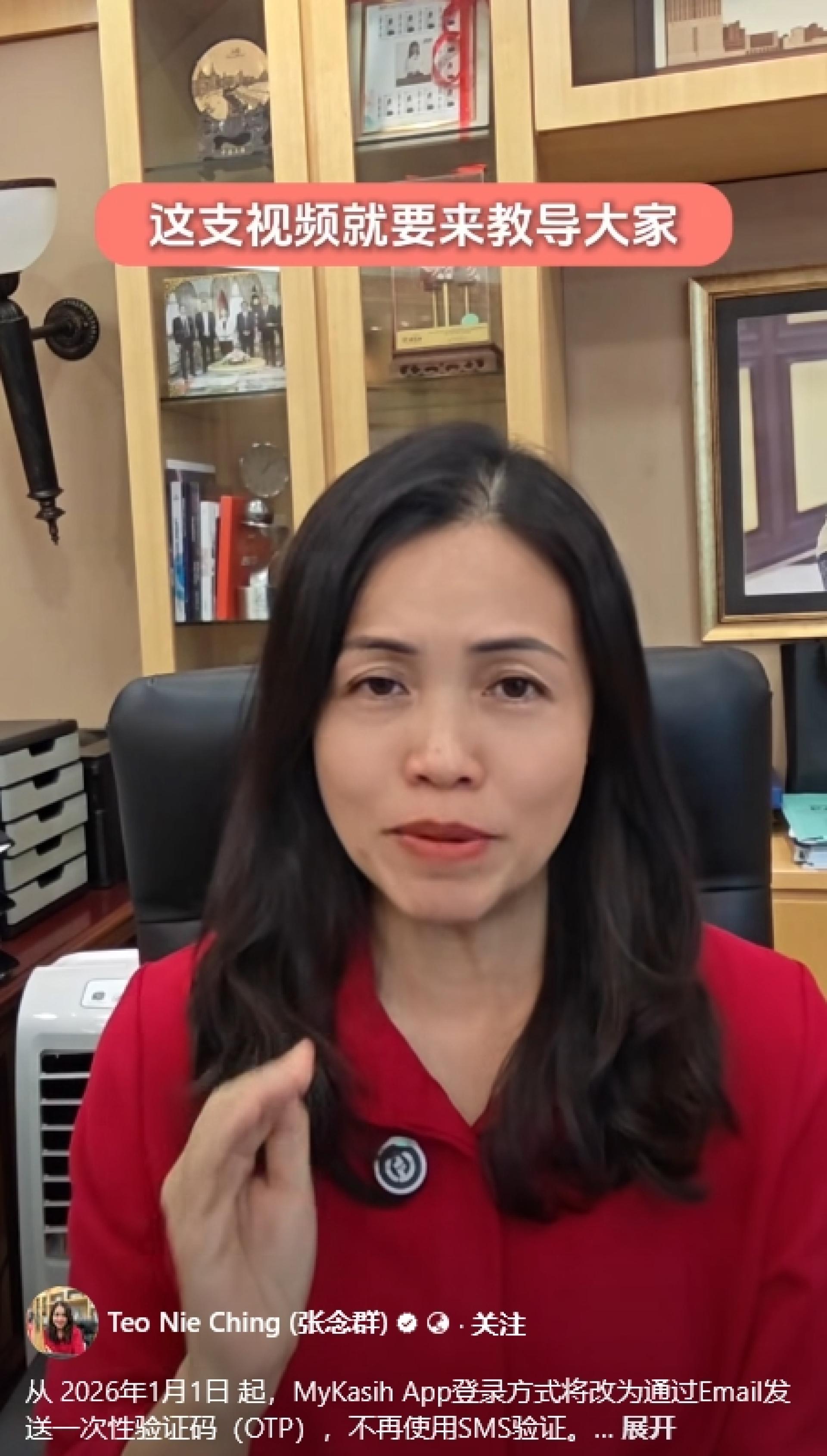 通讯部副部长张念群宣布,从明年1月1日起,“MyKasih”计划的手机应用程式,登录方式将由原本的发短讯验证,改为透过电邮发送“单次验证密码”(OTP)。