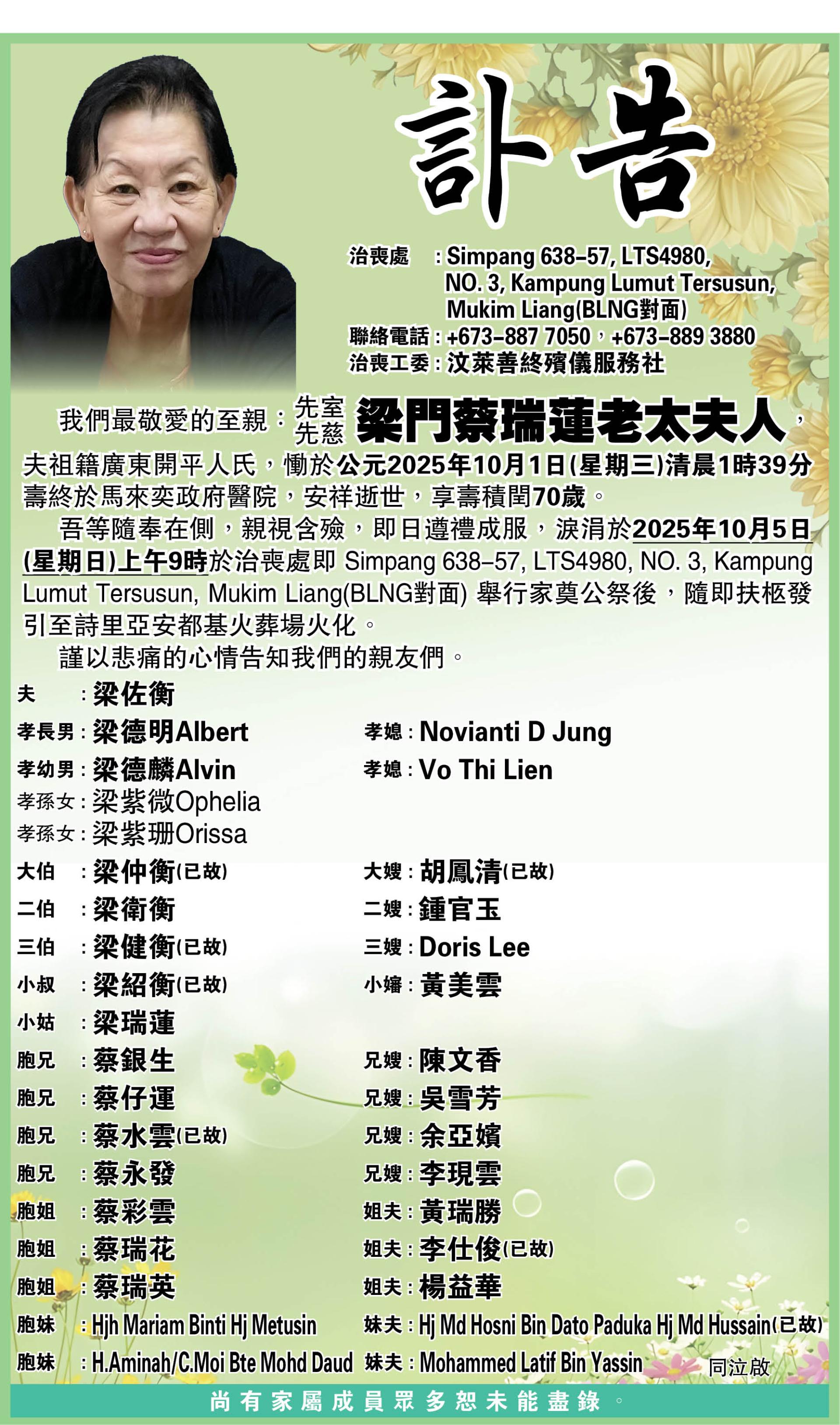 【讣告】蔡瑞蓮