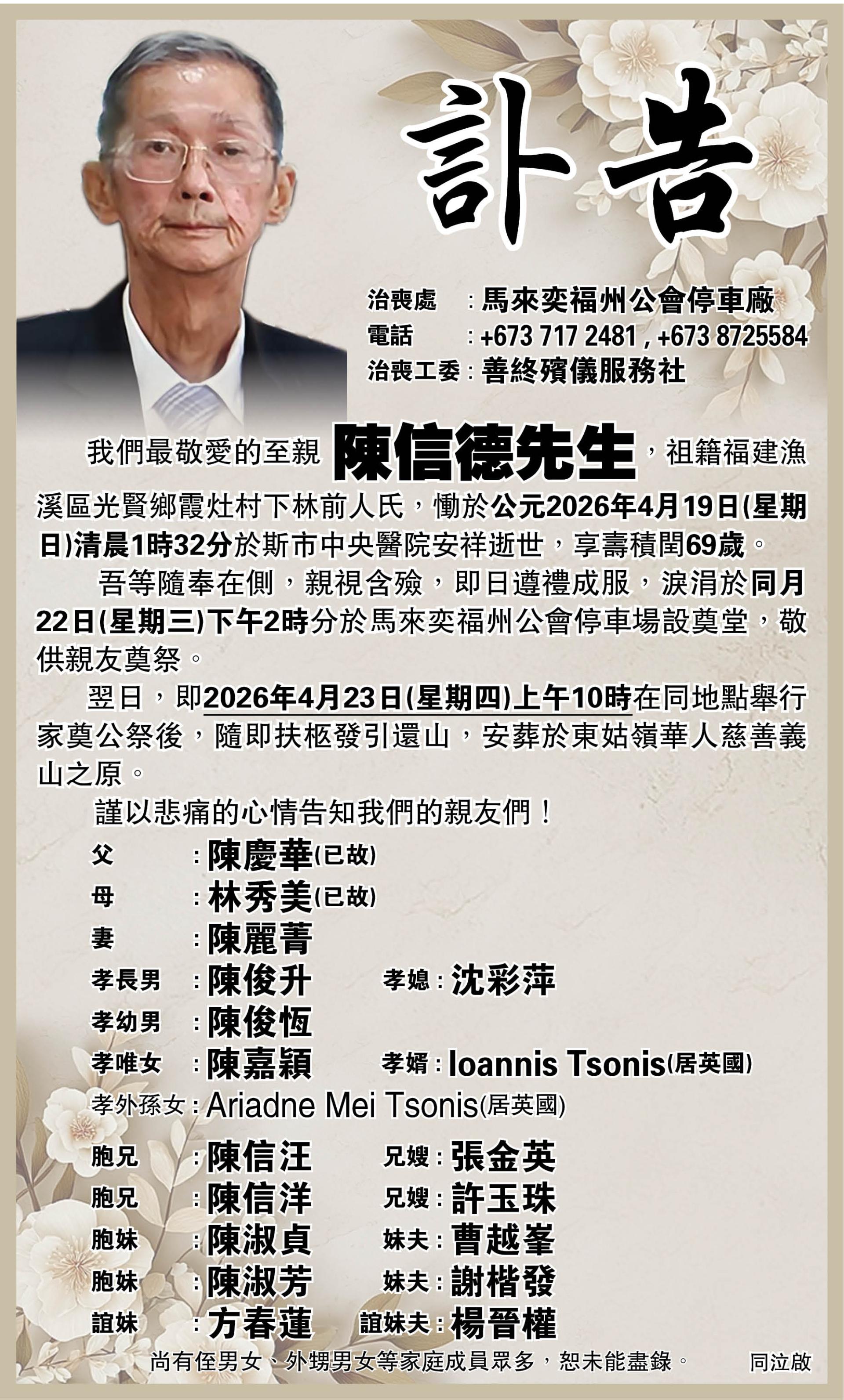 【讣告】陳信德