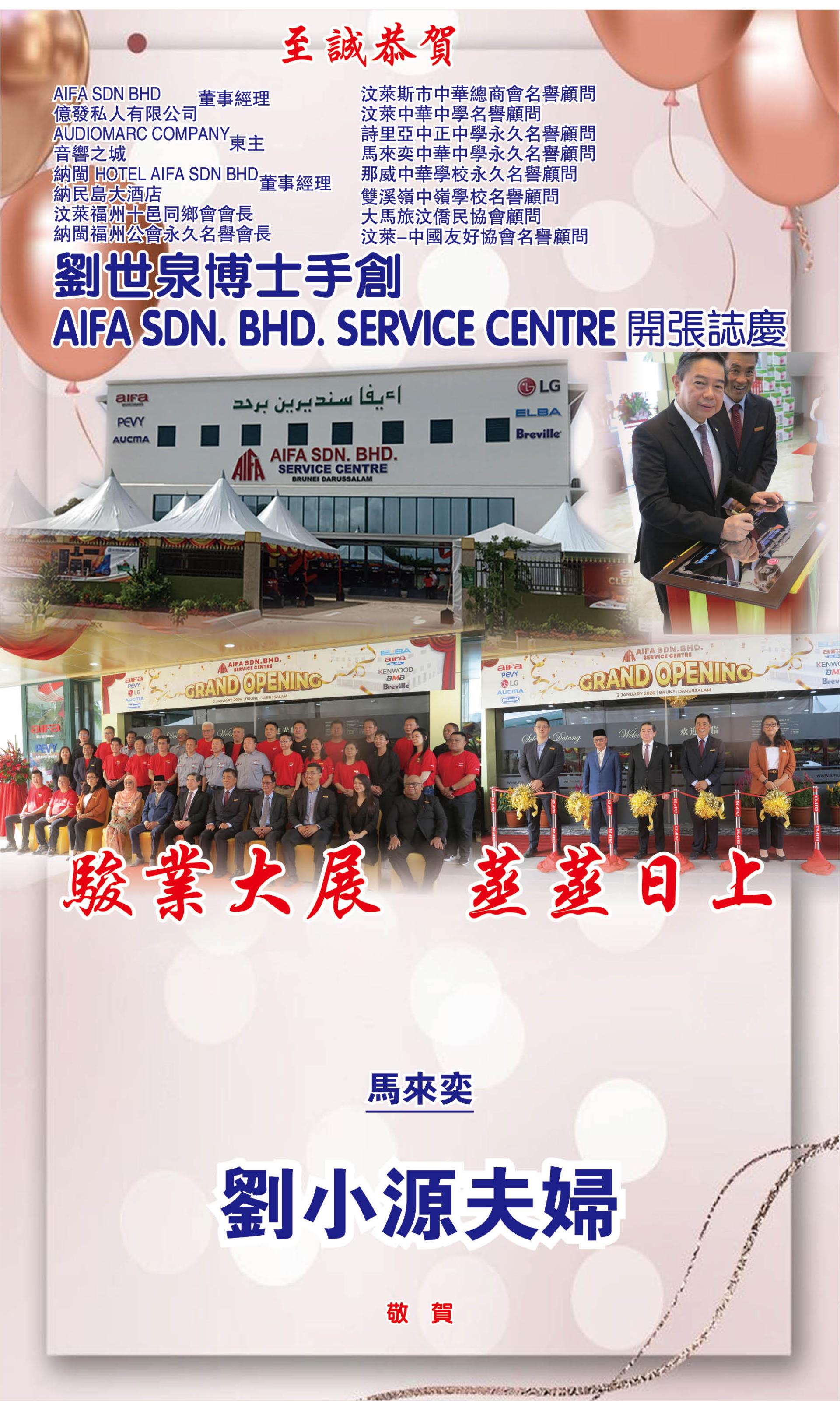 賀AIFA SDN. BHD. SERVICE CENTRE 開張誌慶