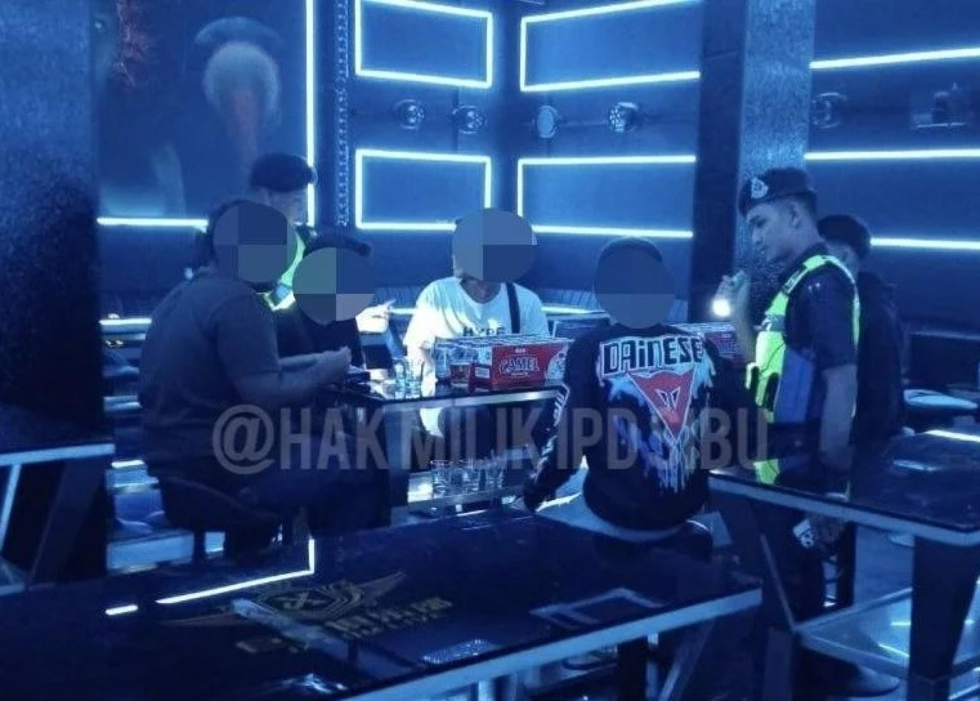 警员在娱乐场所检查人员。
