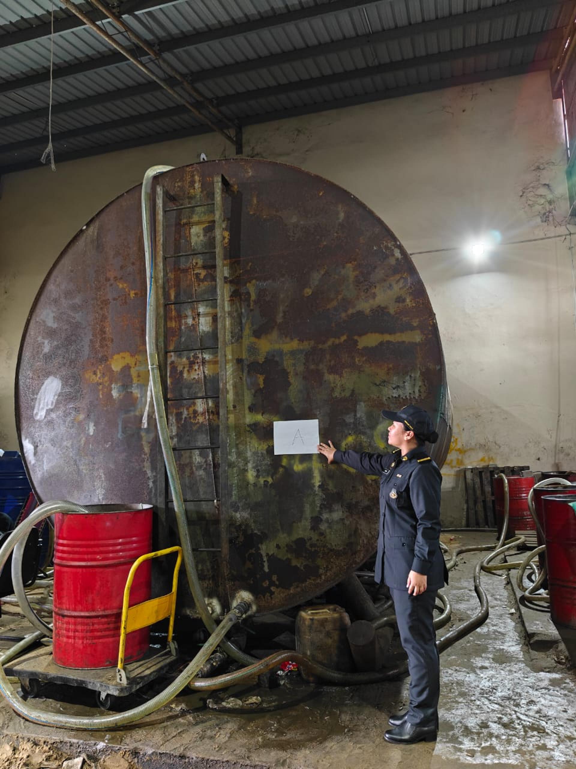 执法人员初步检查发现,该仓库未持有任何由管制官发出的许可或批准文件,却被发现存放约800公升疑似柴油的受管制品,涉嫌违反相关条例。