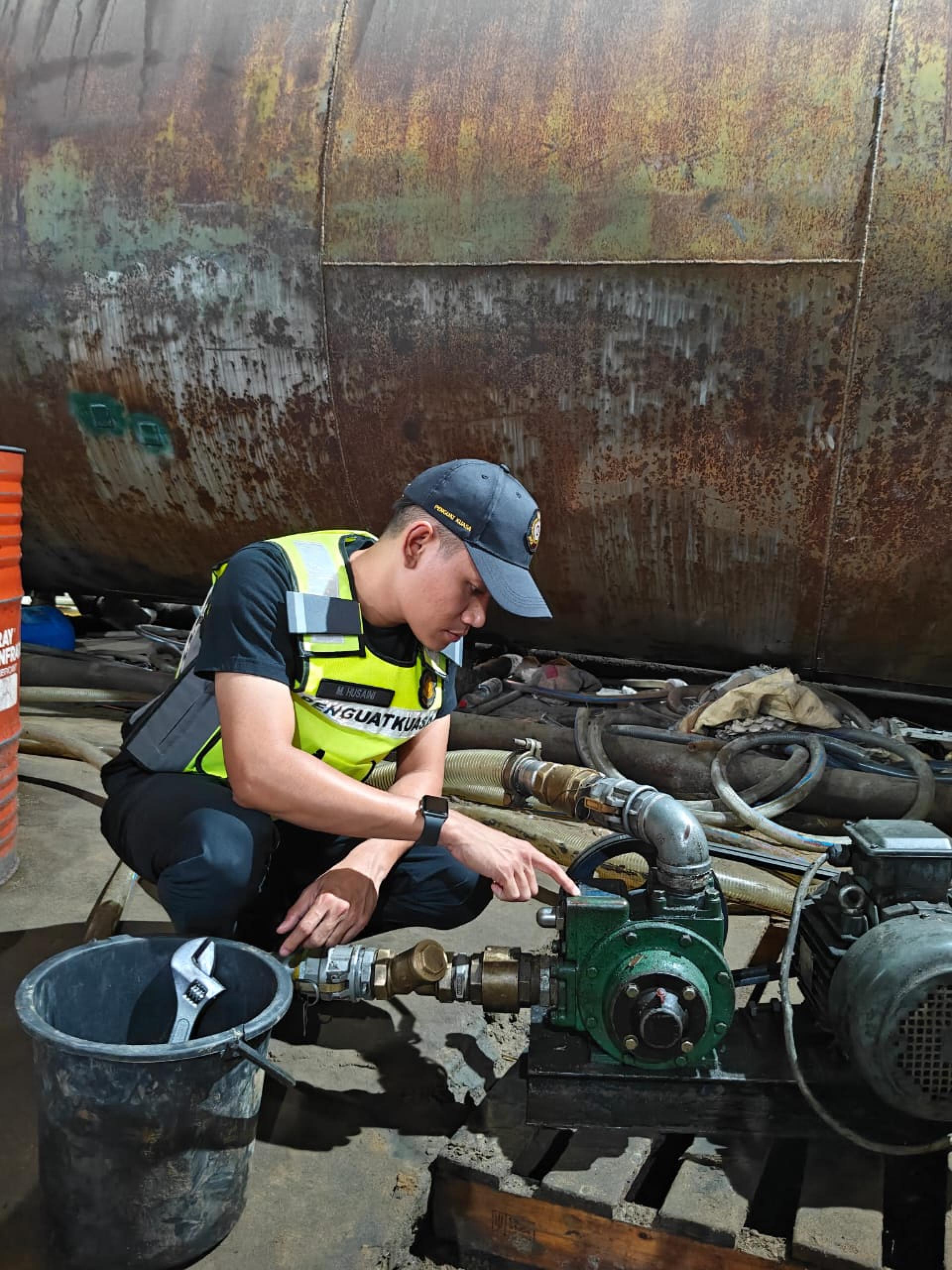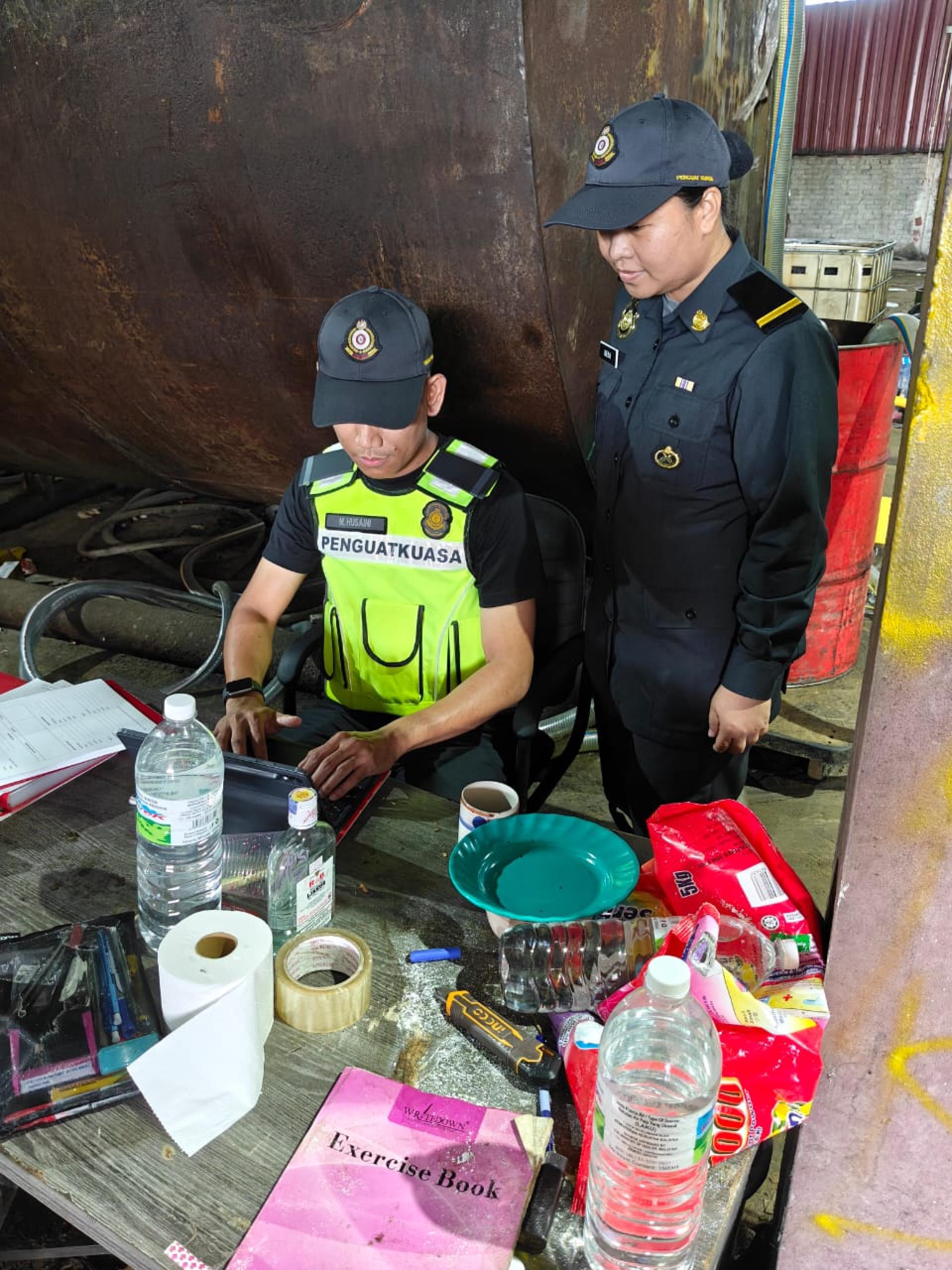 (美里27日讯)国内贸易及生活成本部(KPDN)美里分局执法组昨日突击检查位于史纳汀一间仓库,侦破一起涉嫌滥用受管制品柴油案件,并当场展开充公行动。