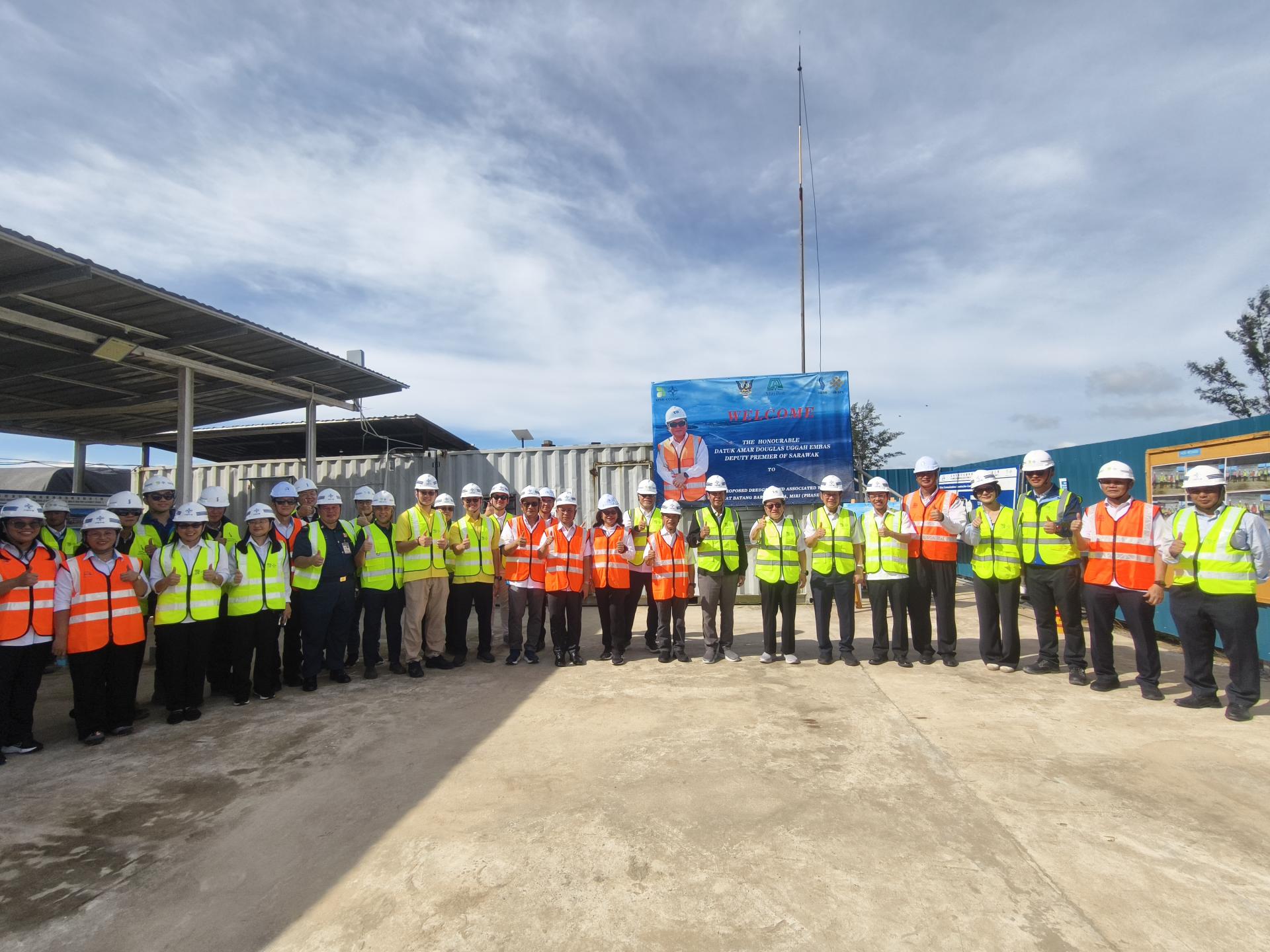 随同道格拉斯巡视工程现场的官员包括砂拉越交通部长拿督斯里李景胜、副基础设施与港口发展部长港口事务拿督马章仁吉、美里海港局主席拿督保罗斯贡邦、砂基础设施和港口发展部常务秘书拿督赵慈佑、美里海港局总经理舍拉瓦、砂公共工程局局长拿督卡西迪莫里斯博士、砂州港口顾问拿督伊恩詹姆斯、,以及来自美里海港局、JKR砂拉越及相关机构的高级技术官员。