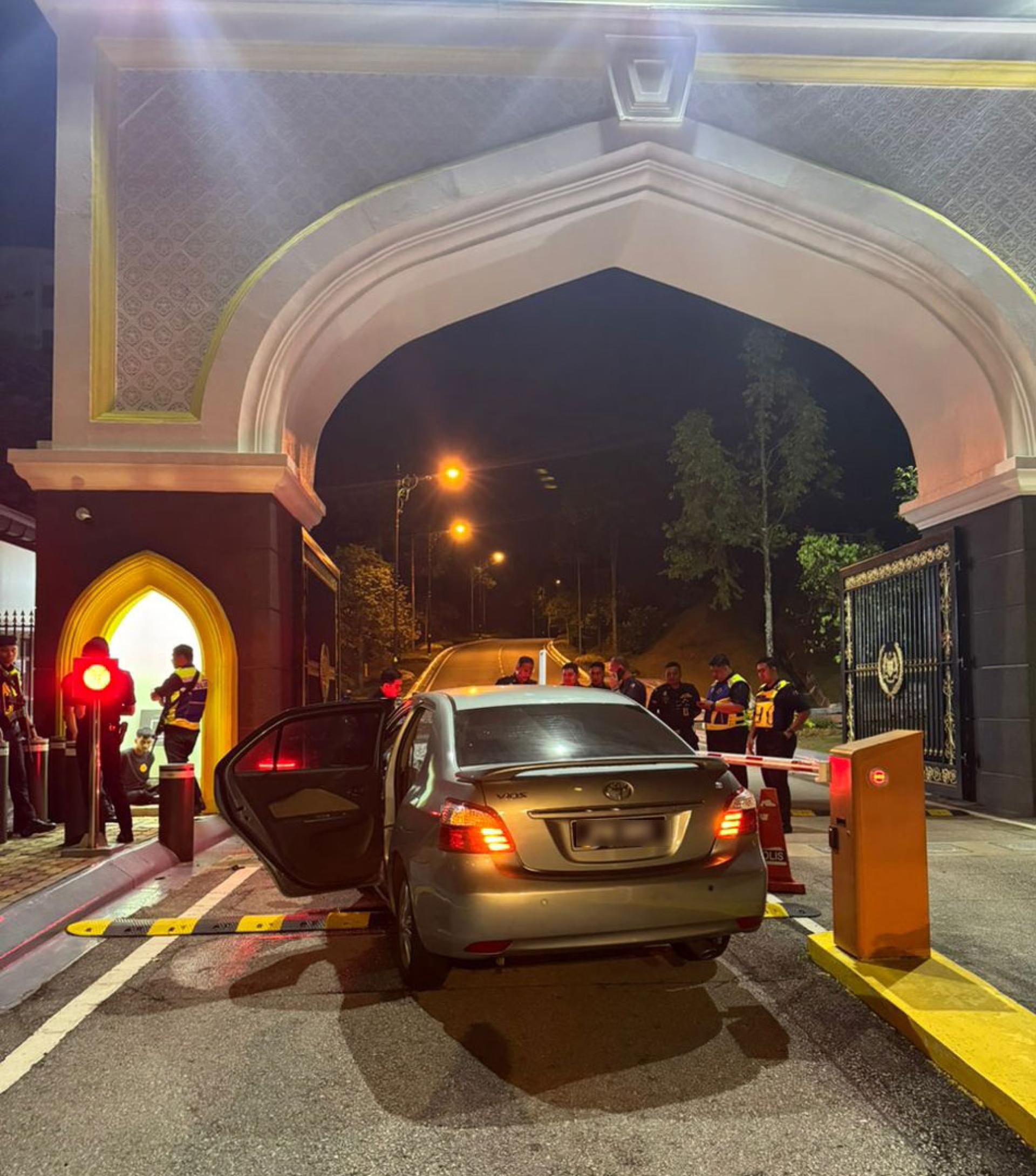 这名印裔司机于周五(1月23日)凌晨3时30分左右,乘车从武吉白沙罗(Bukit Damansara)方向行驶至长卡士曼丹路(Jalan Changkat Semantan)时,失控撞上国家王宫2号门的护柱(Bollard Pole)及道闸(Barrier Gate)。