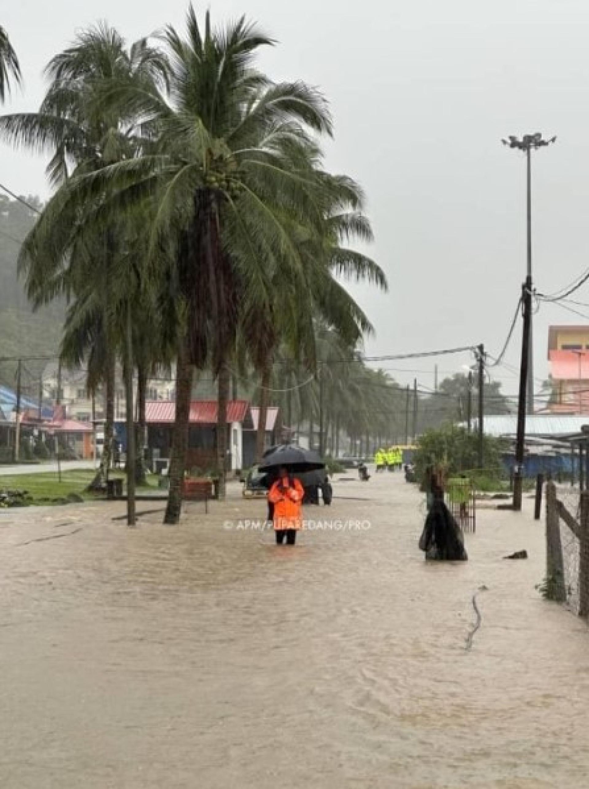 据《Kosmo!》报道,小停泊岛村(Kampung Pulau Perhentian Kecil)因连续豪雨,周日清晨6时起出现的大潮现象,水位上涨至约1公尺深。