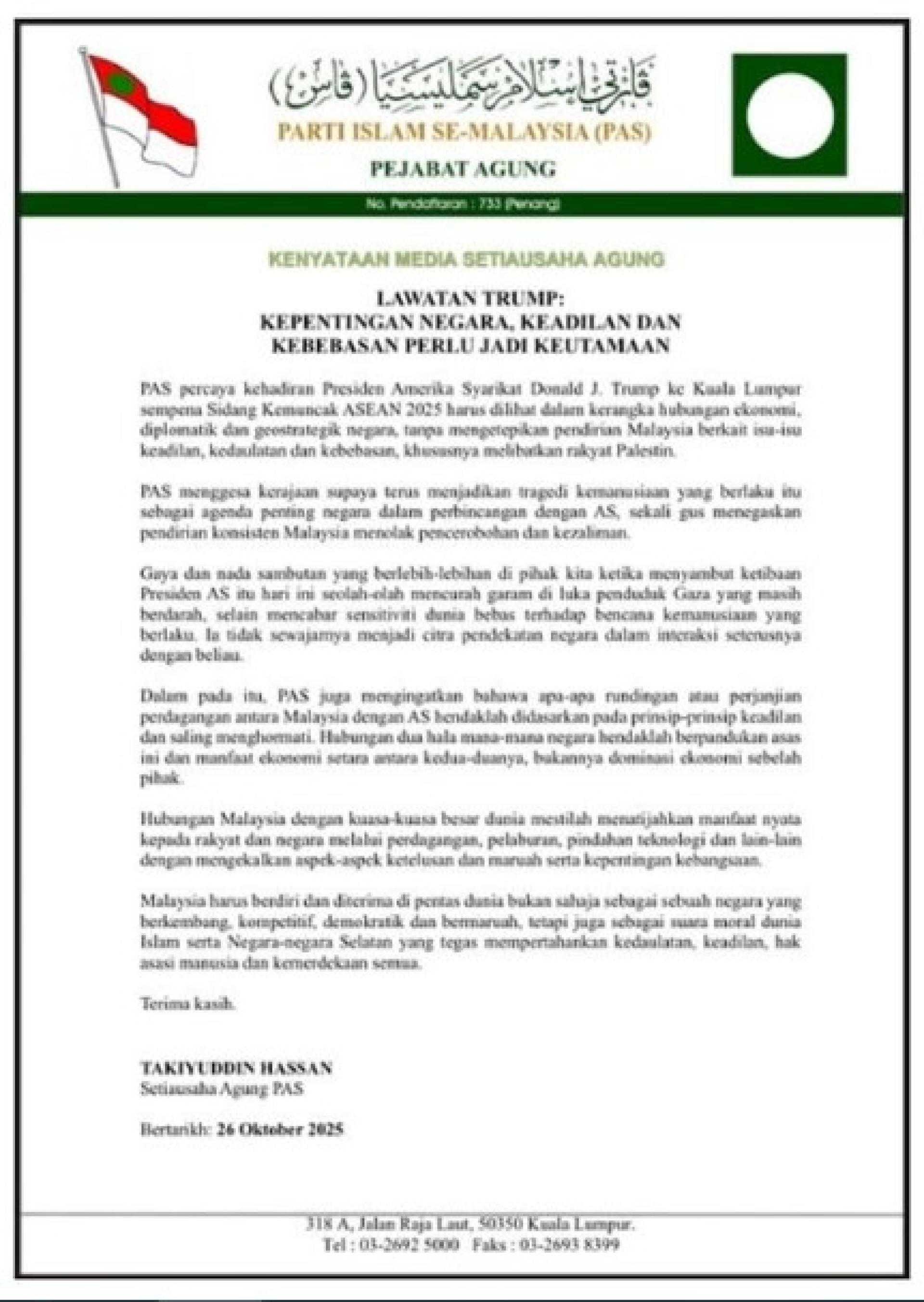 達基尤丁:迎特朗普方式太多餘 大馬應捍衛挺巴立場