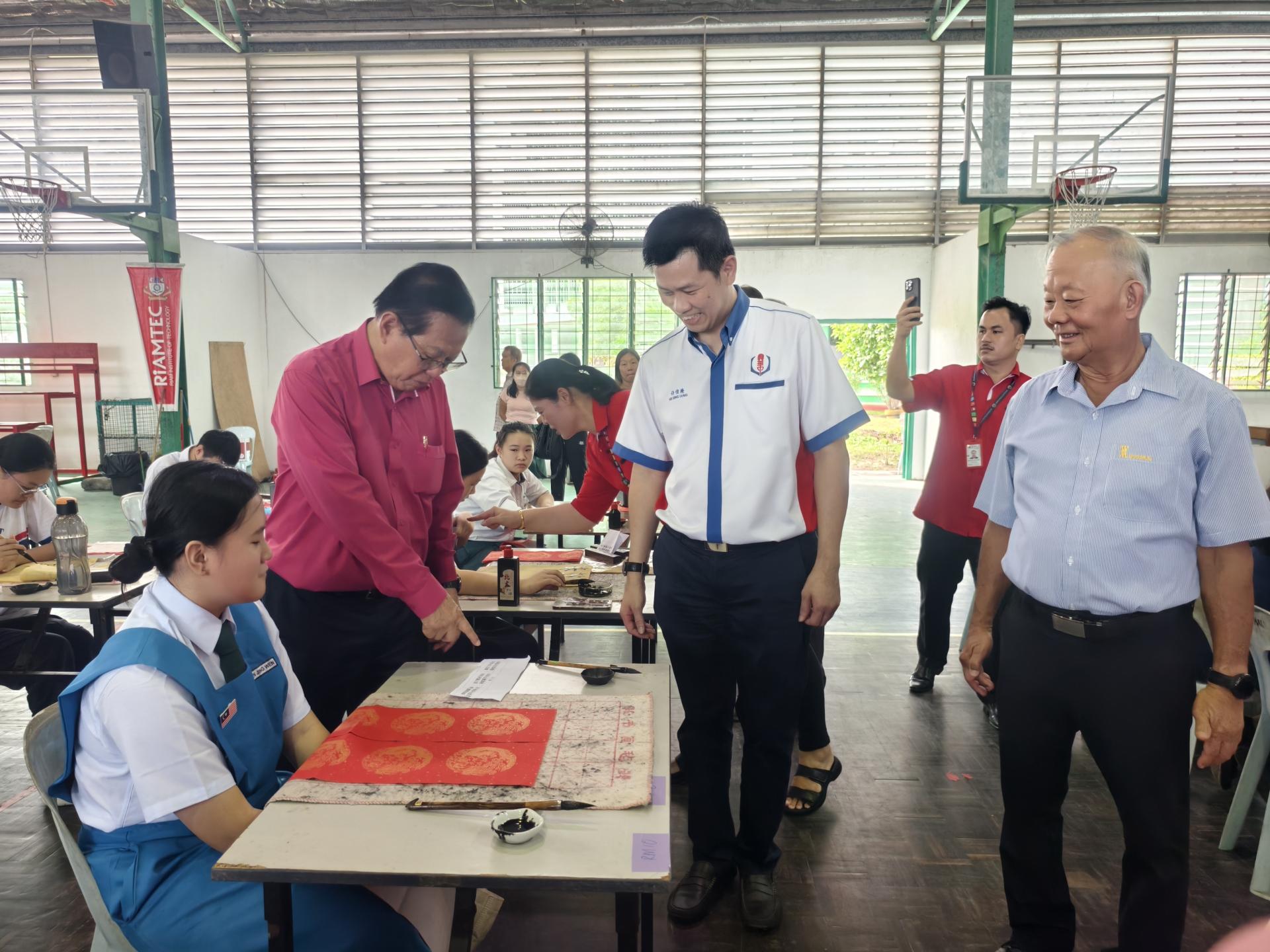 他也感谢廉律中学积极协办赛事,并赞扬该校身为独中,坚持三语并重的教育理念,同时肩负文化使命,透过华文学会与书法学会在校园内持续推广中华文化,为学生提供学习、实践与展示才华的平台,让文化教育得以在校园中生根发芽。