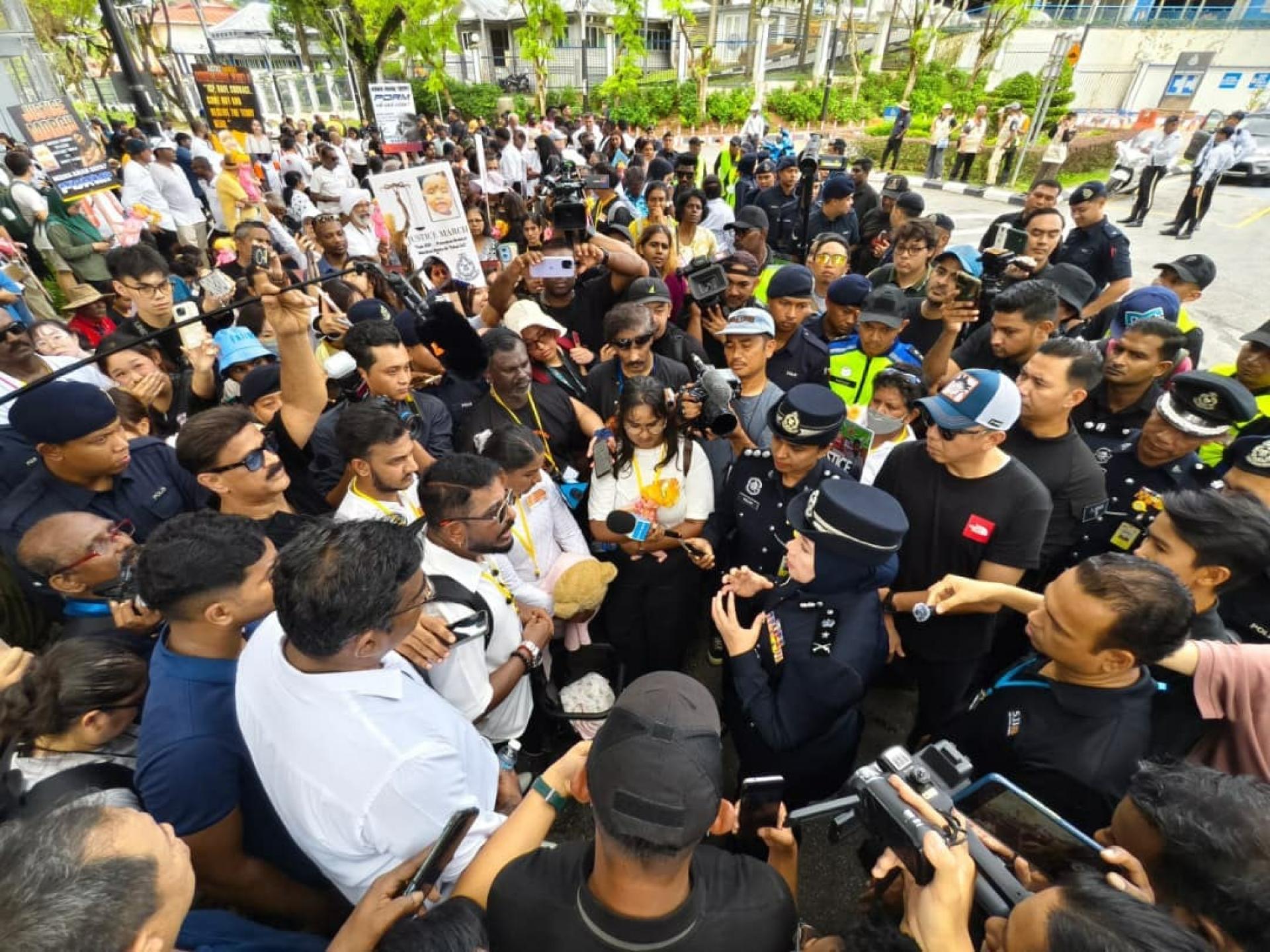 “印裔子女改教案”正义之行的事主英迪拉,在支持者陪同下,于周六(11月22日)中午12时前游行到全国警察总部,但她坚持把玩偶泰迪熊交给全国总警长拿督斯里卡礼,而拒绝把泰迪熊玩偶交给任何警官!
