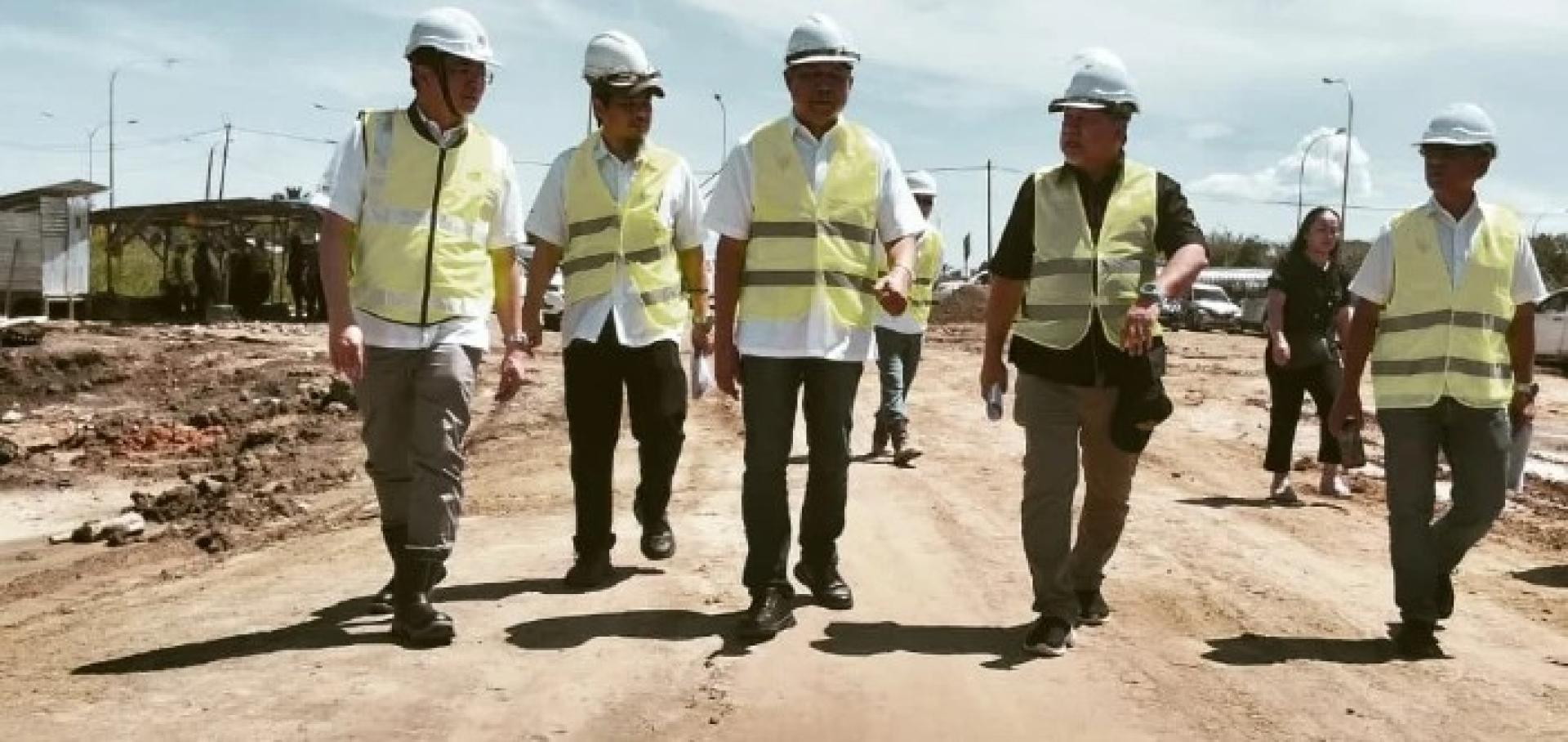 艾代尔与依斯干达巡视敦泰益玛目大桥至民都鲁机场双向公路工程进展。