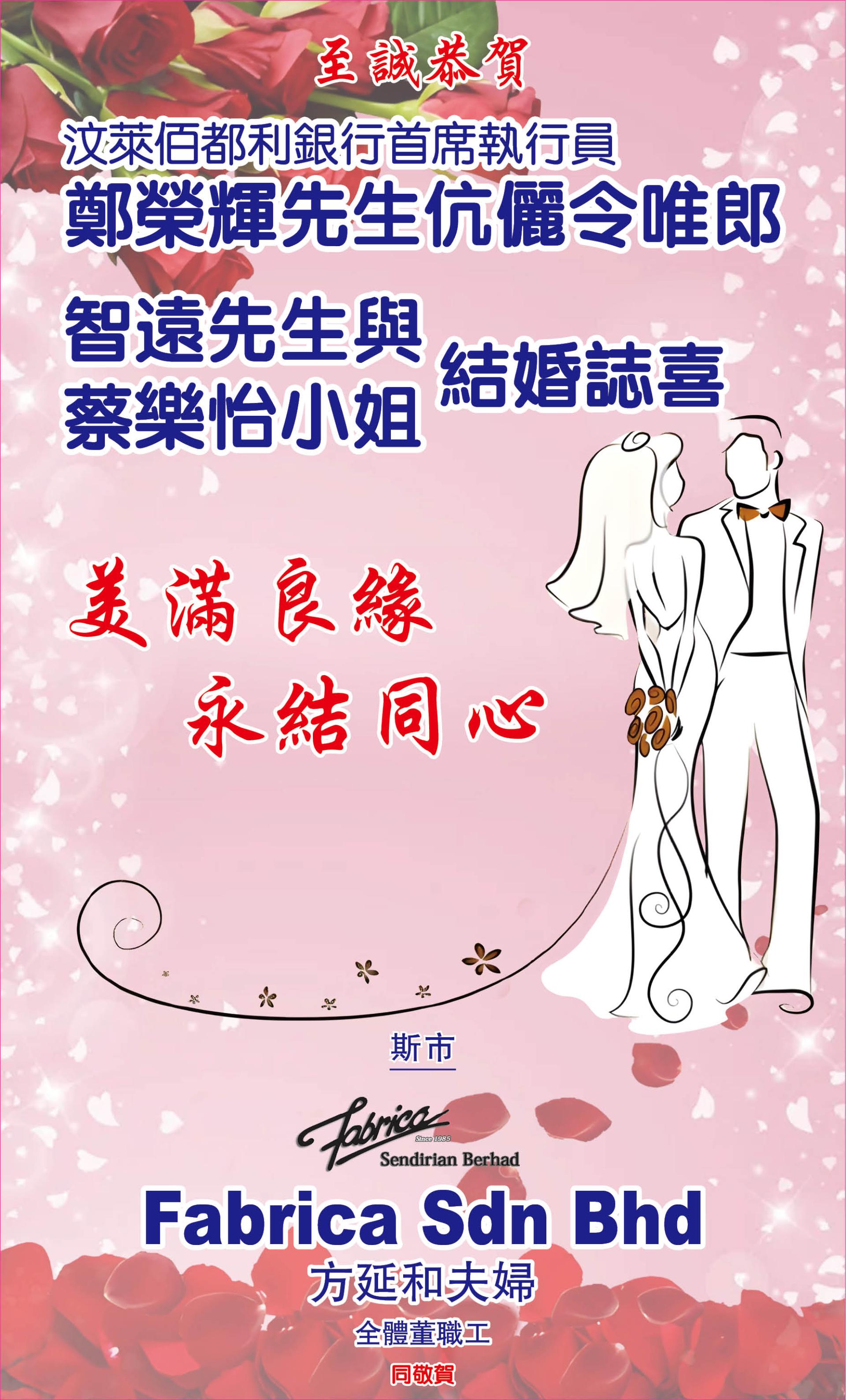 【贺词】賀鄭智遠先生与蔡樂怡小姐結婚誌喜
