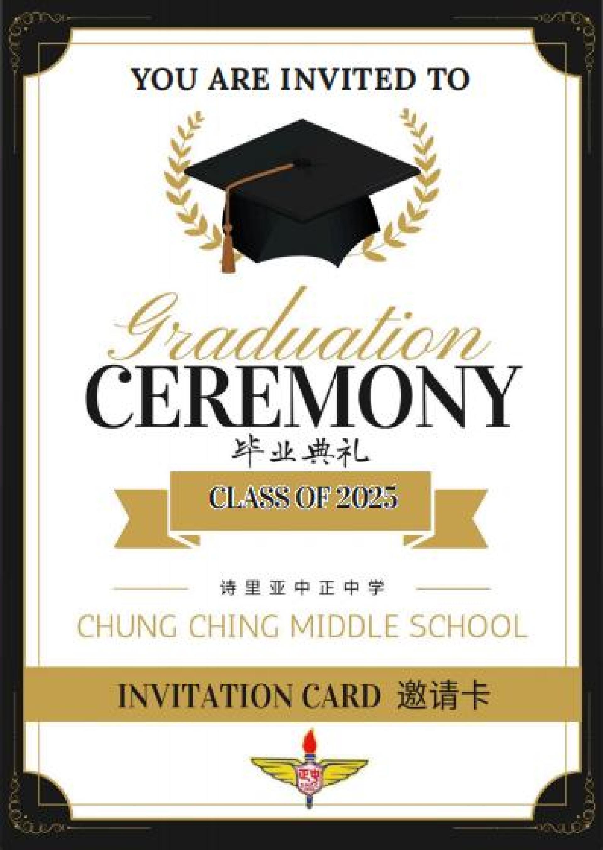 (诗里亚12日讯)诗里亚中正中学将订于本月22日 (星期六)上午8时于该校金禧礼堂举行 六年级及十一年级学生的毕业典礼。