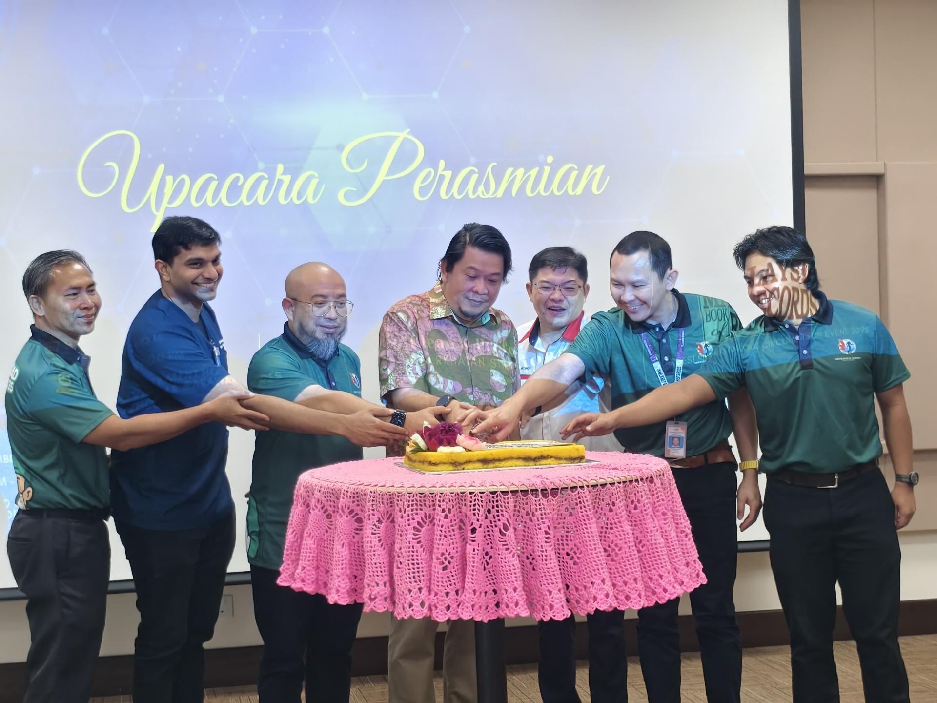 主宾兼马来西亚外交部副部长拿督鲁卡尼斯曼(中)在众人陪同下,切黄糯米糕。右3为美里医院院长黄修儒医生。 此外,他指出,卫生部已推行“医院外包计划”,当政府医院无法提供特定专科服务时,将病患转介至私人医院或诊所,包括心脏手术、MRI及PET扫描等。这是近三年来在他与两任卫生部长拿督斯里扎丽哈医生及拿督祖尔推动下的重要医疗改革与创新举措。