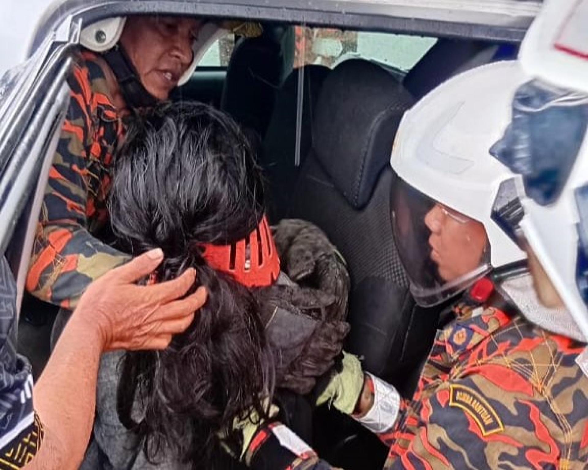 轿车撞分界堤翻覆 四人受伤