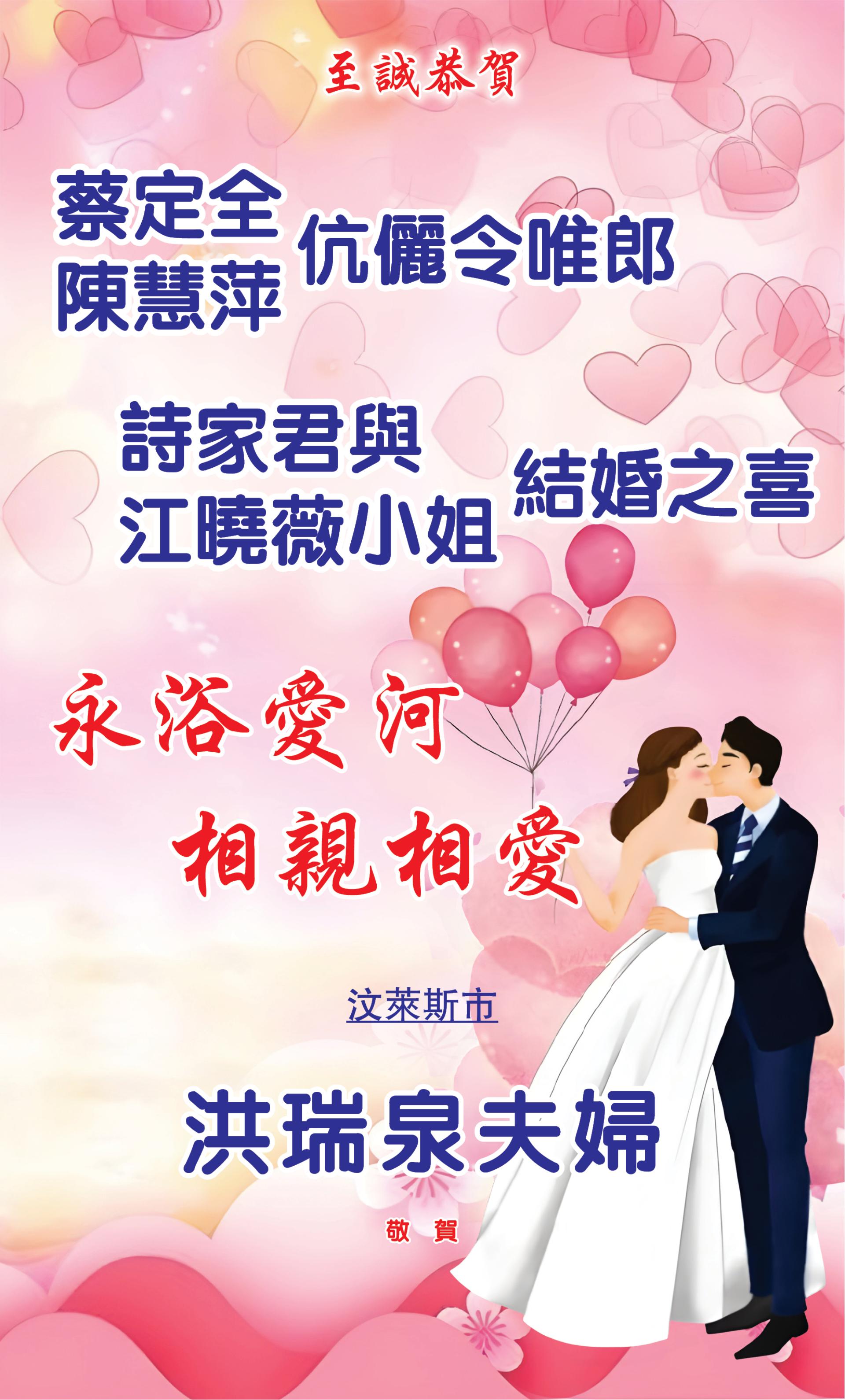 【贺词】蔡诗家君与江晓薇小姐结婚之喜
