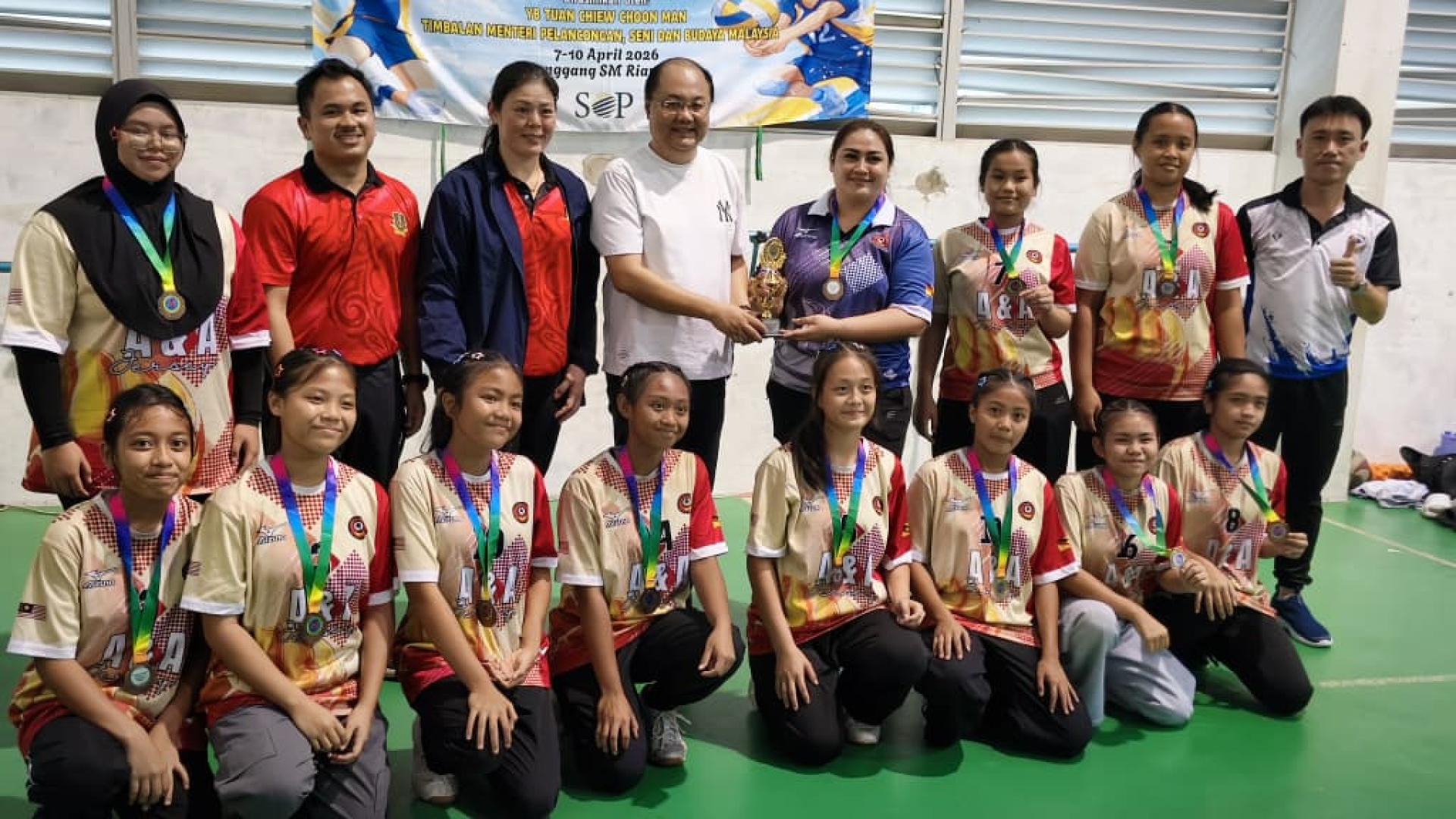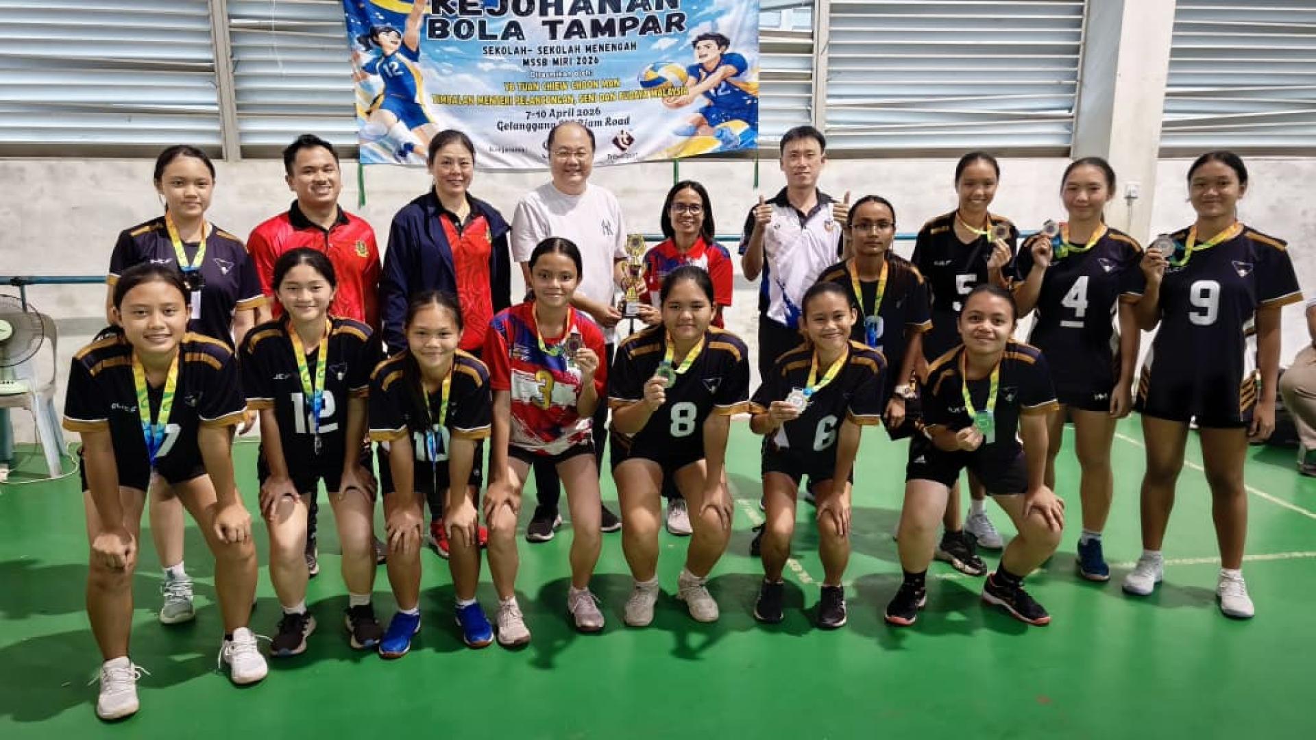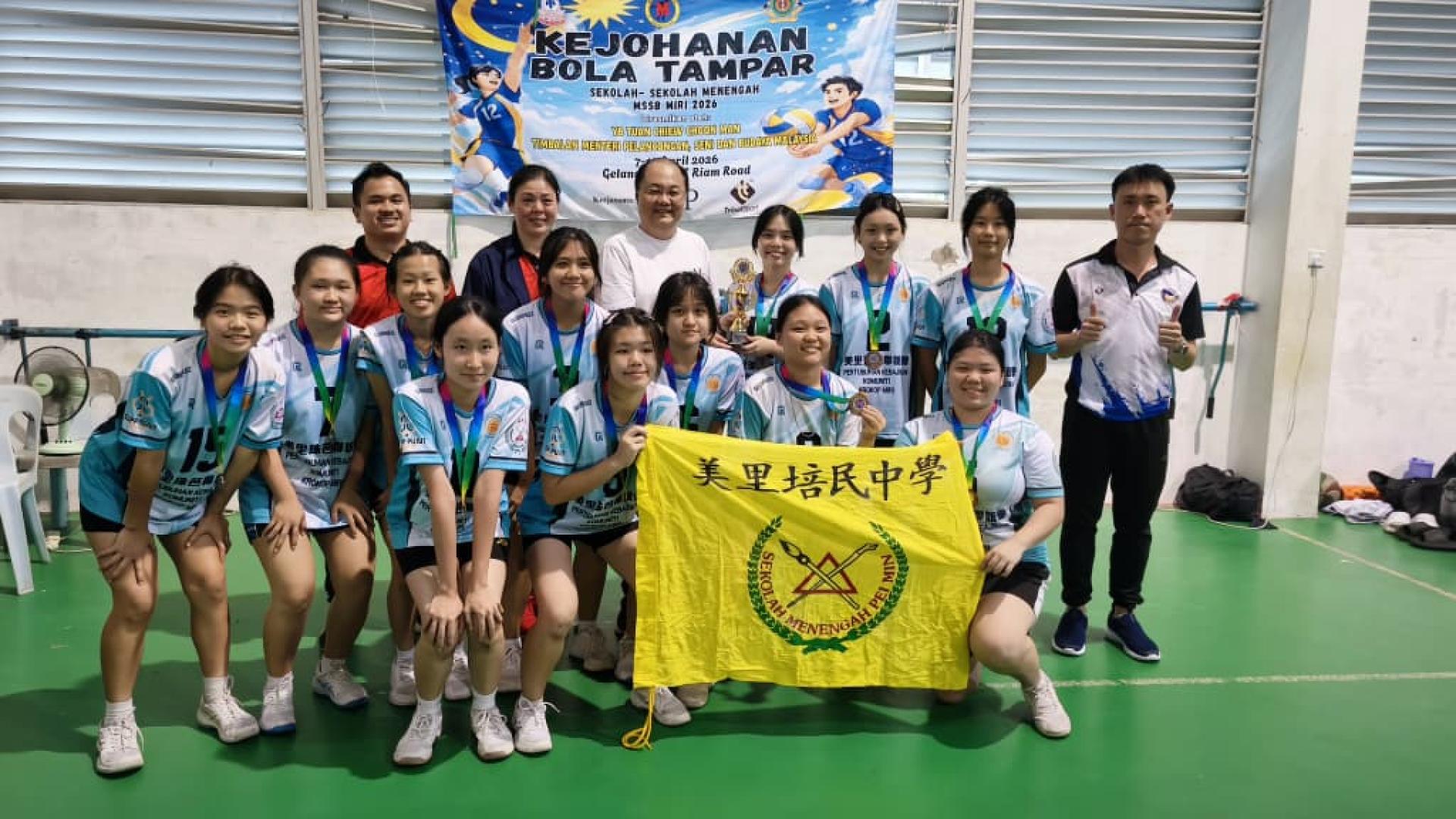 (本报美里11日讯)由圣哥伦巴国中主办,2026年美里中学学联排球赛(MSSB)昨日在廉律中学排球馆圆满落幕,廉律中学表现出色,勇夺男女组双料冠军,成为本届赛事最大赢家。