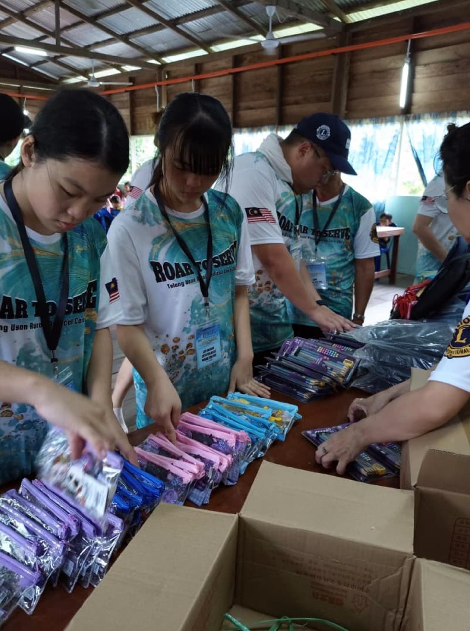 廉律中学学生在活动中协助整理物资,参与社区服务工作。